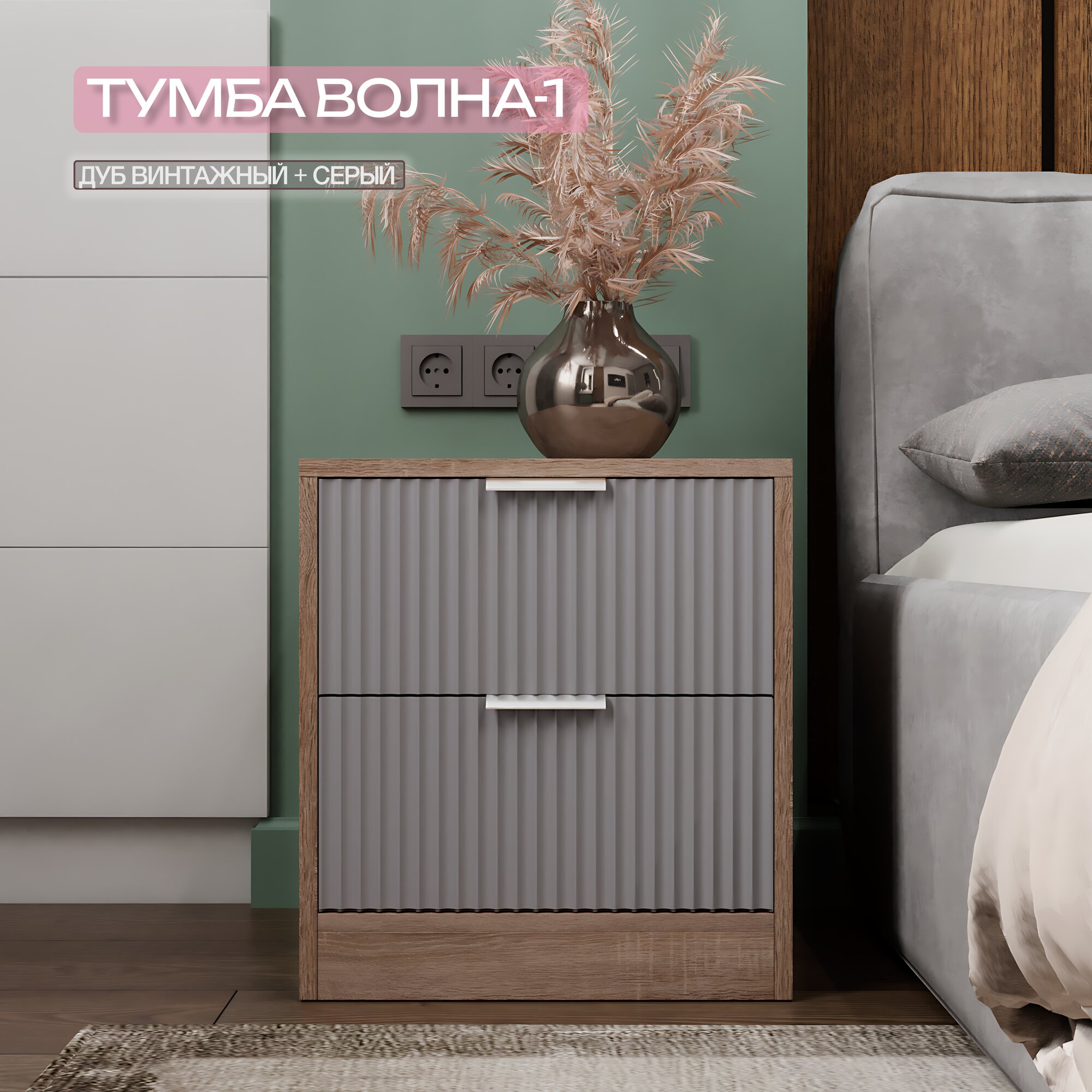 Прикроватная тумба напольная ВОЛНА-1 дуб винтаж оксид/серая, 43.6х40х45.7см