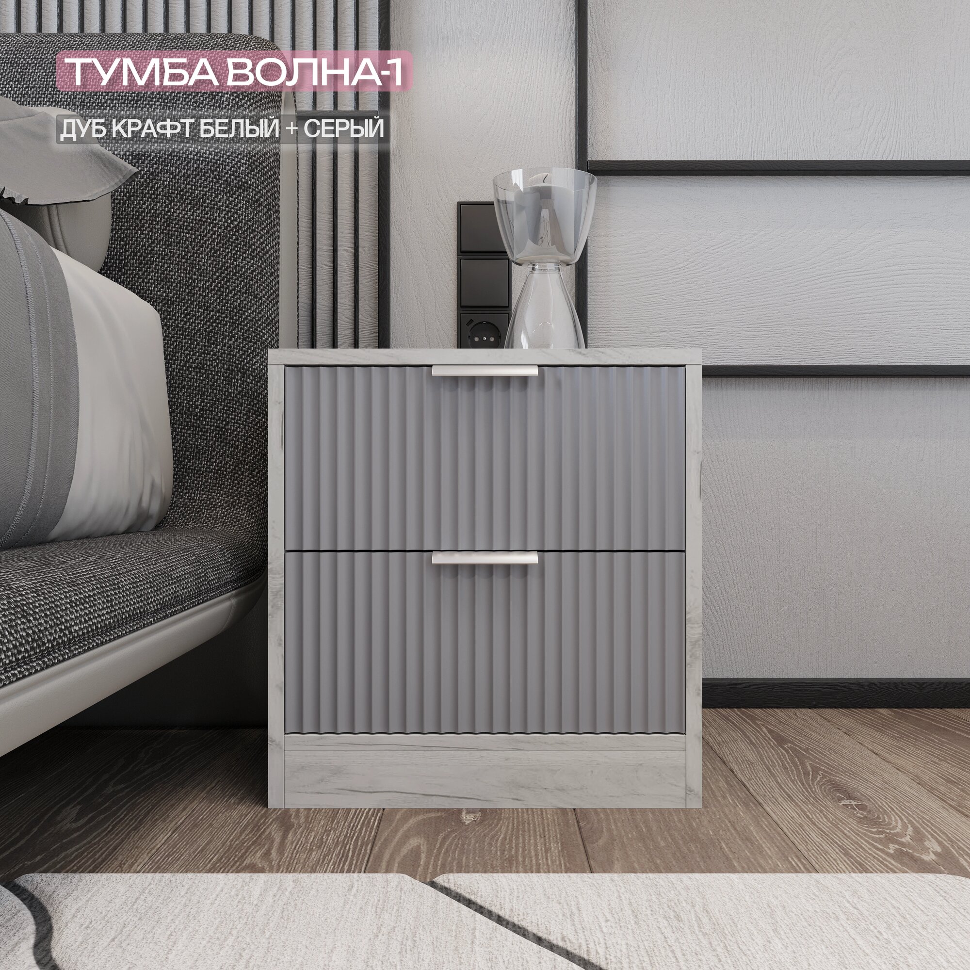 Тумба прикроватная KOMODO ВОЛНА-1 дуб крафт белый/серый, 43.6х40х45.7