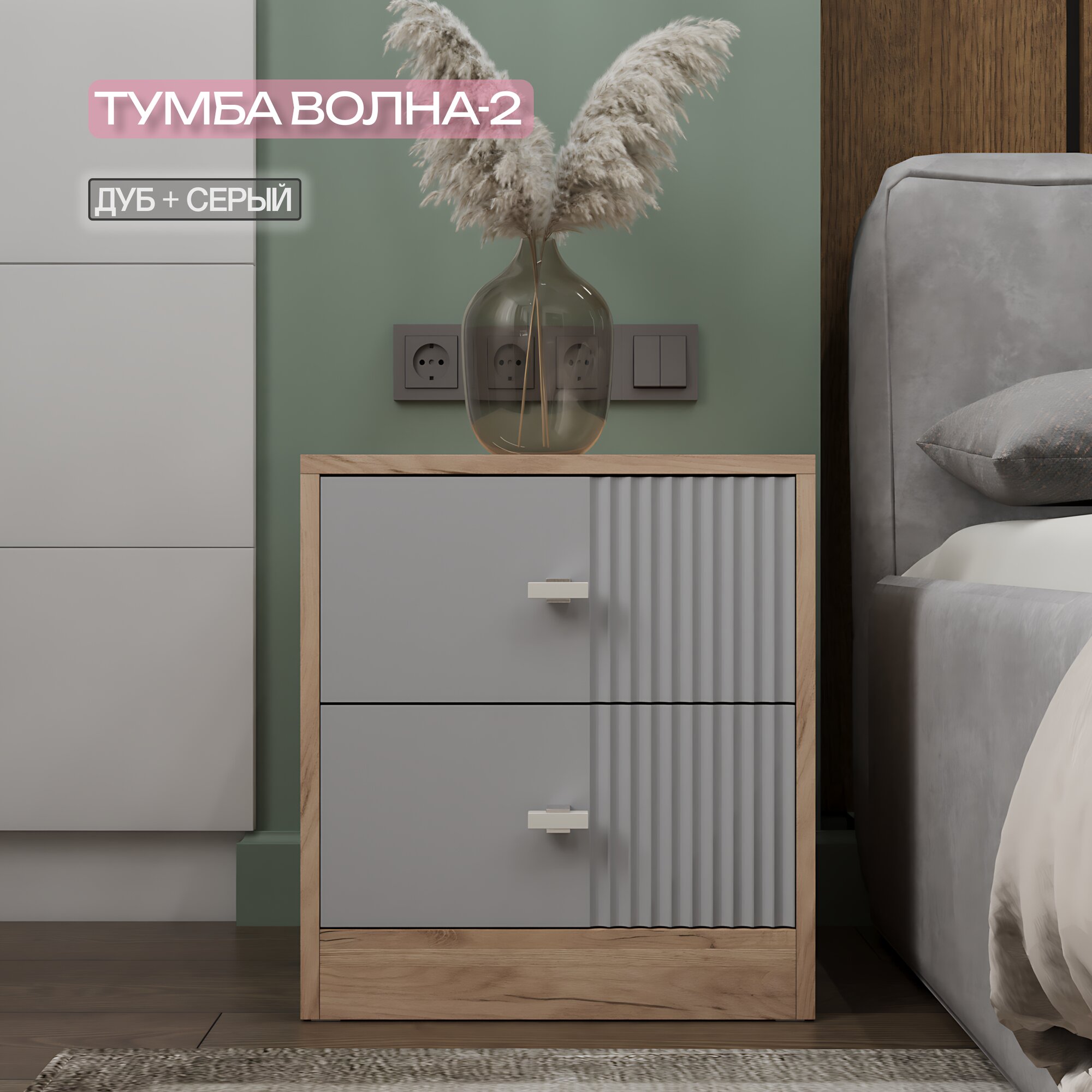 Прикроватная тумба KOMODO, ВОЛНА-2 дуб крафт золотой/серая 43.6х40х45.7