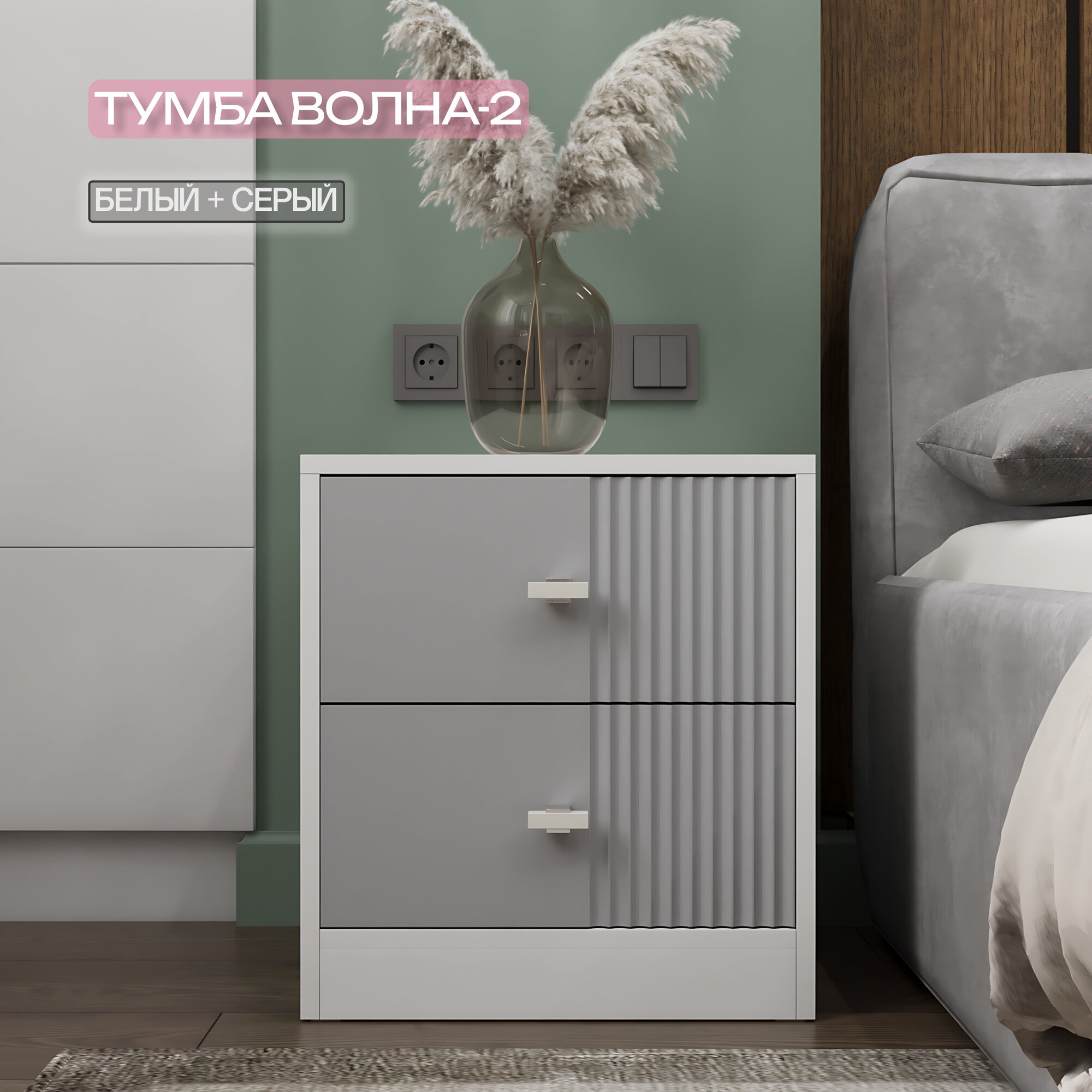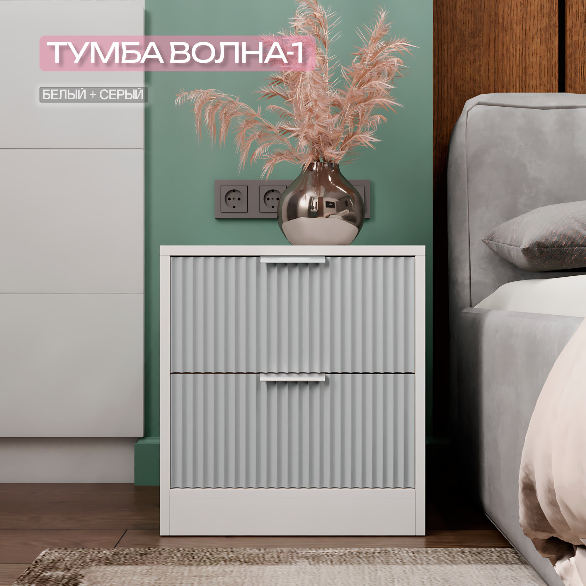 Прикроватная тумба KOMODO ВОЛНА-1 белая/светло-серая, 2 ящика, 43.6х40х45.7