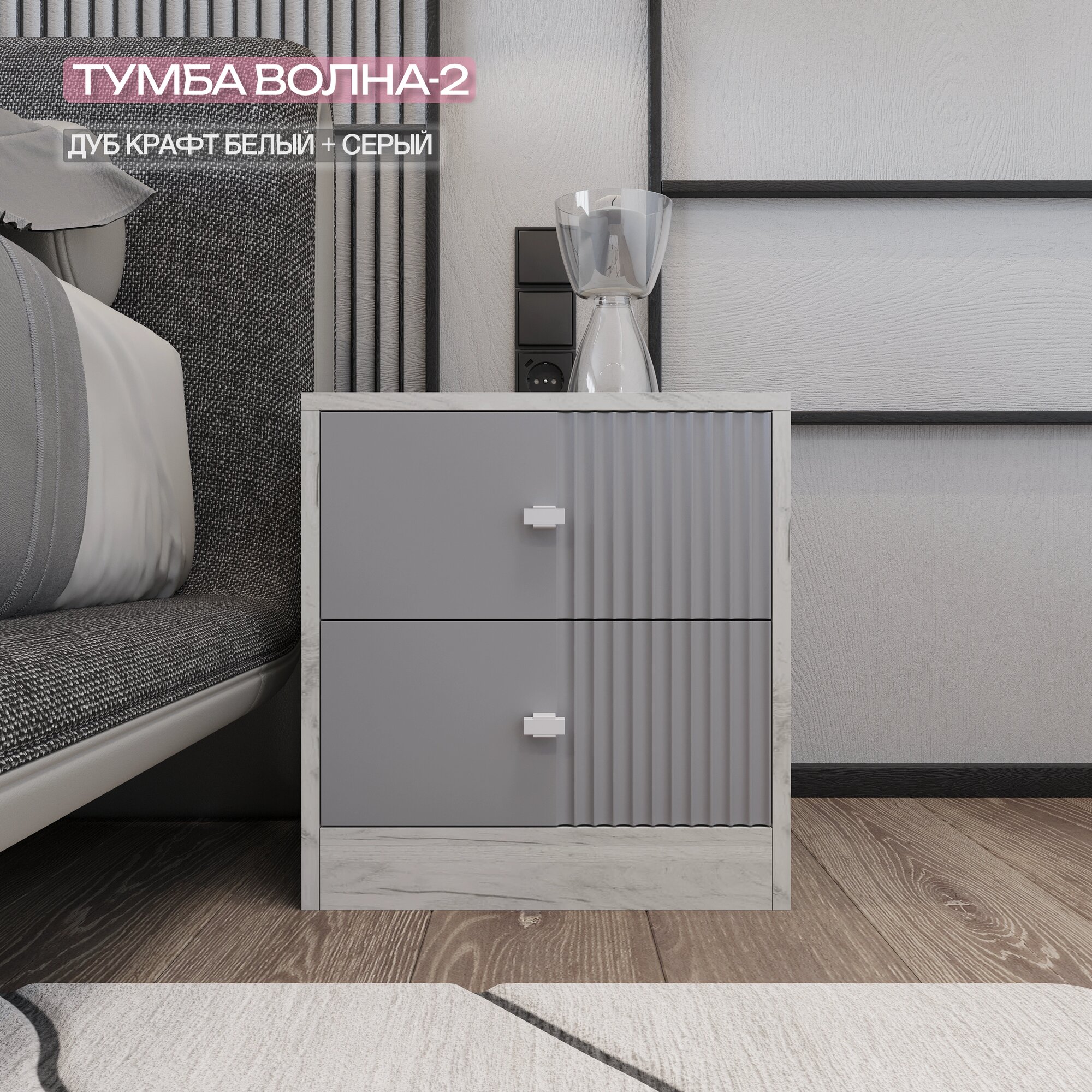 Прикроватная тумба KOMODO ВОЛНА-2, белая/серая 43.6х40х45.7
