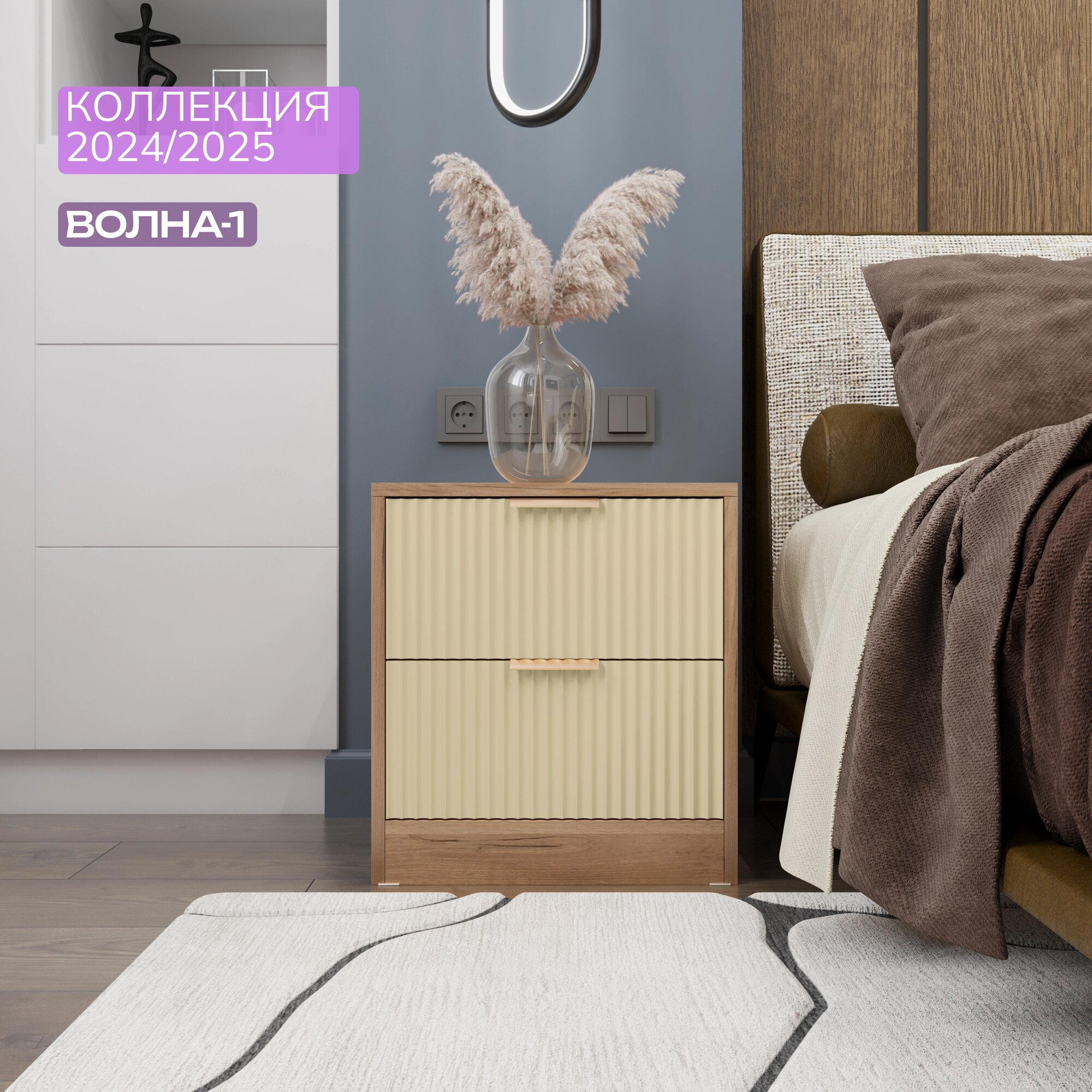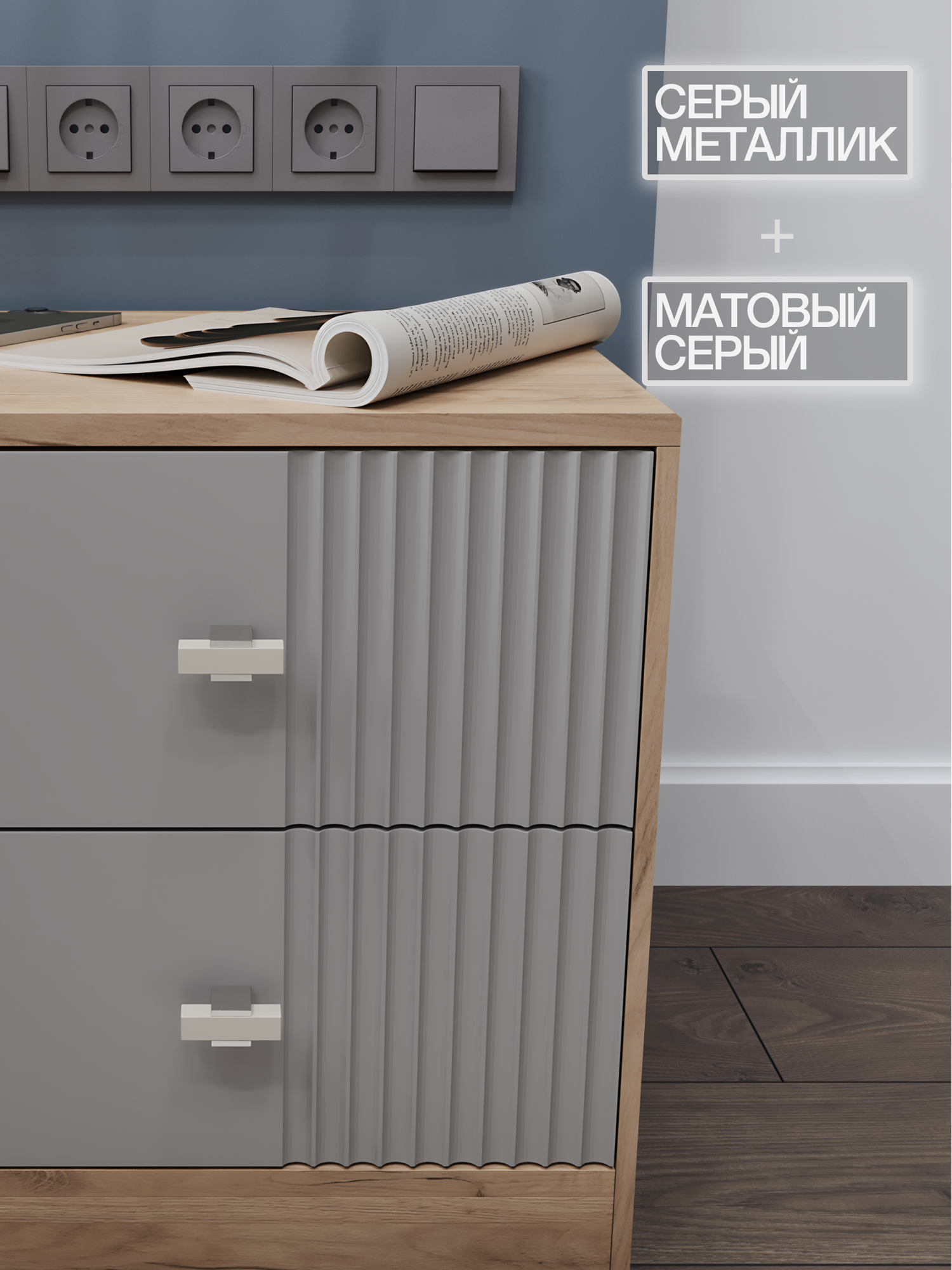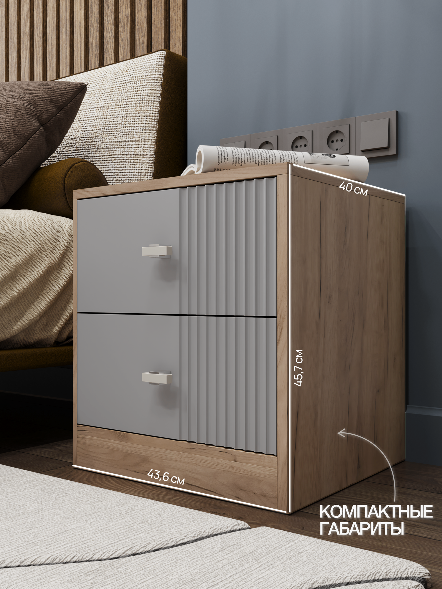 СохранитьПрикроватная тумба KOMODO, ВОЛНА-2 дуб крафт золотой/серая 43.6х40х45.7 интересное: