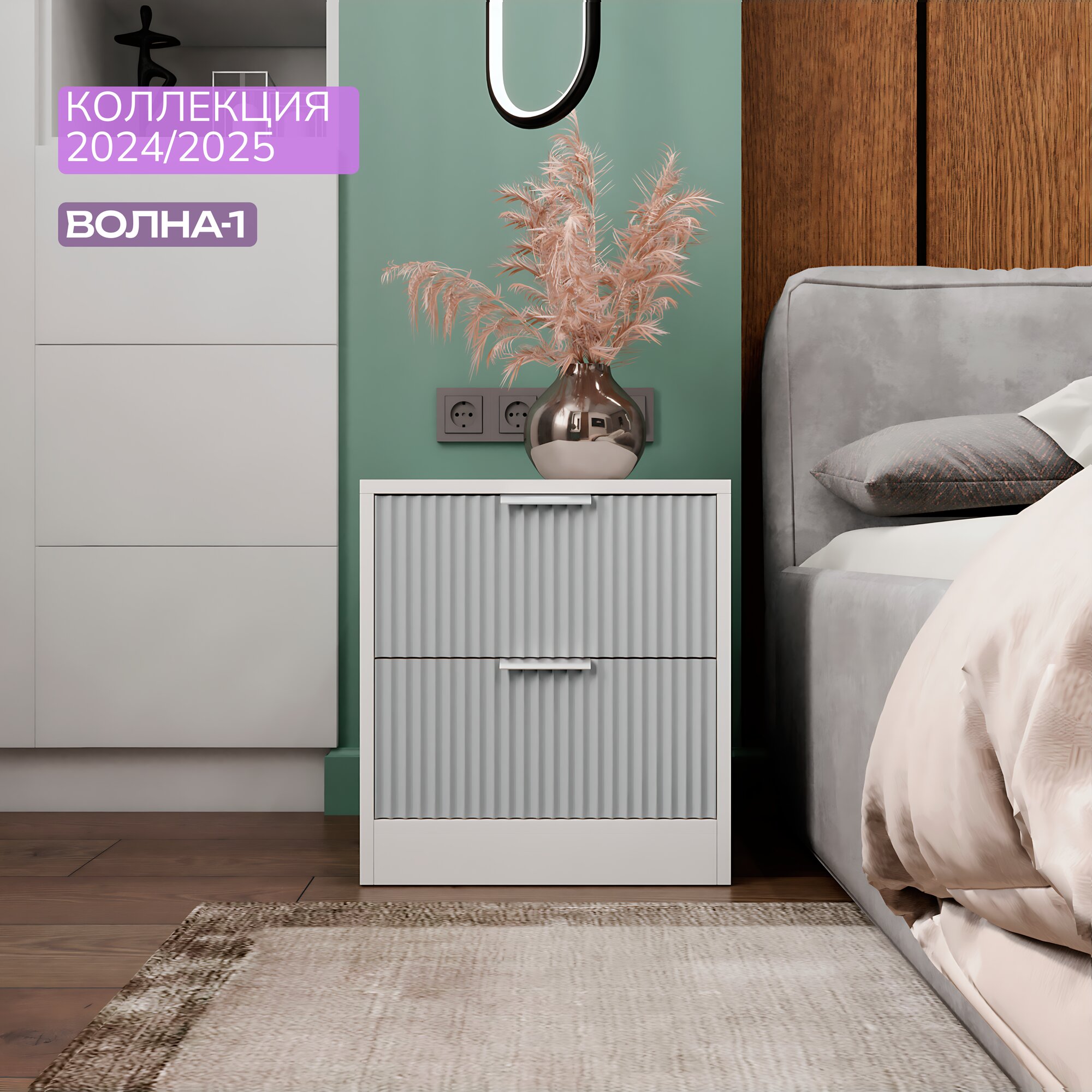 Прикроватная тумба KOMODO ВОЛНА-2, белая/серая 43.6х40х45.7
