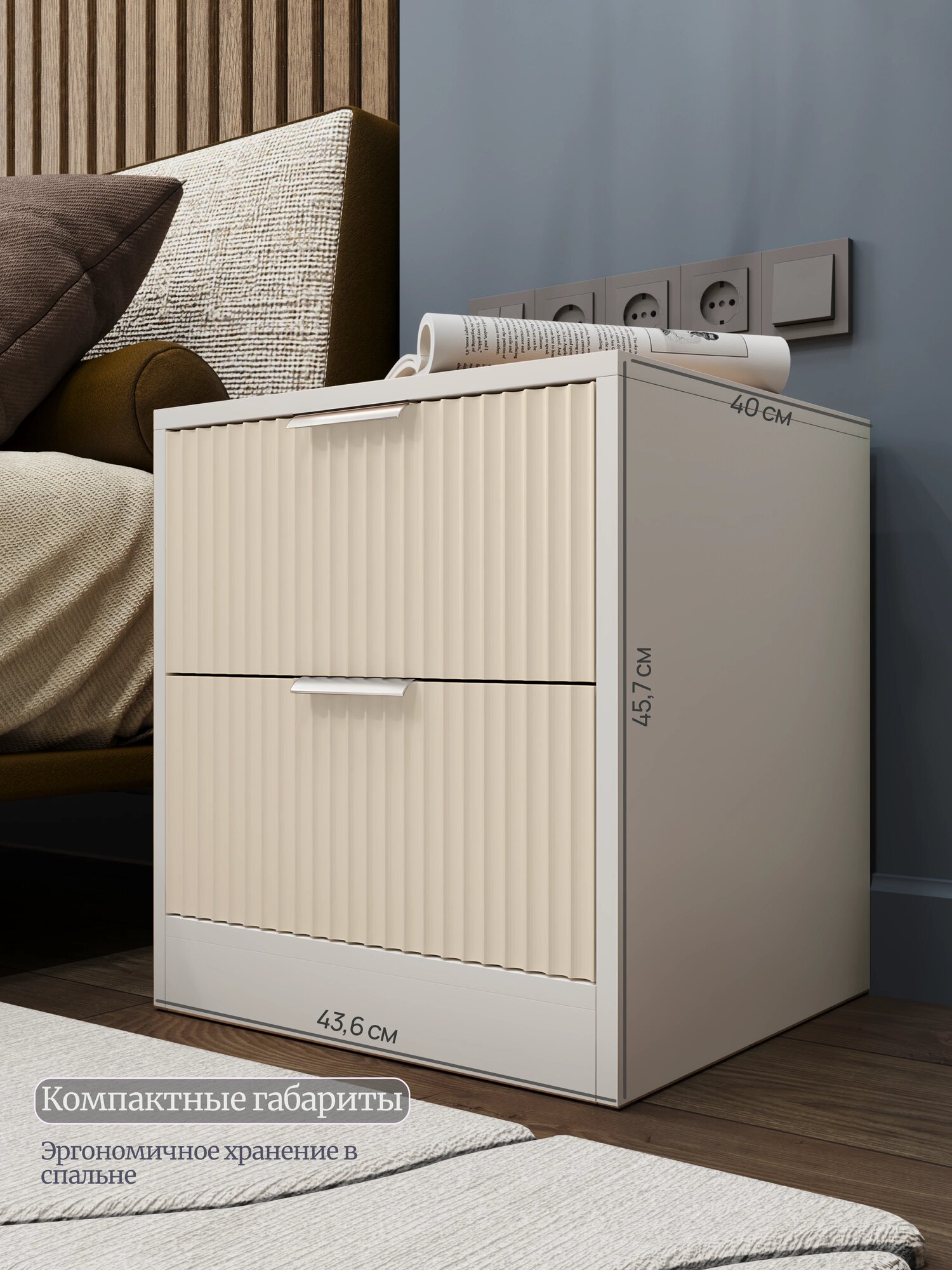 Прикроватная тумба KOMODO ВОЛНА-1 белая/светло-серая, 2 ящика, 43.6х40х45.7