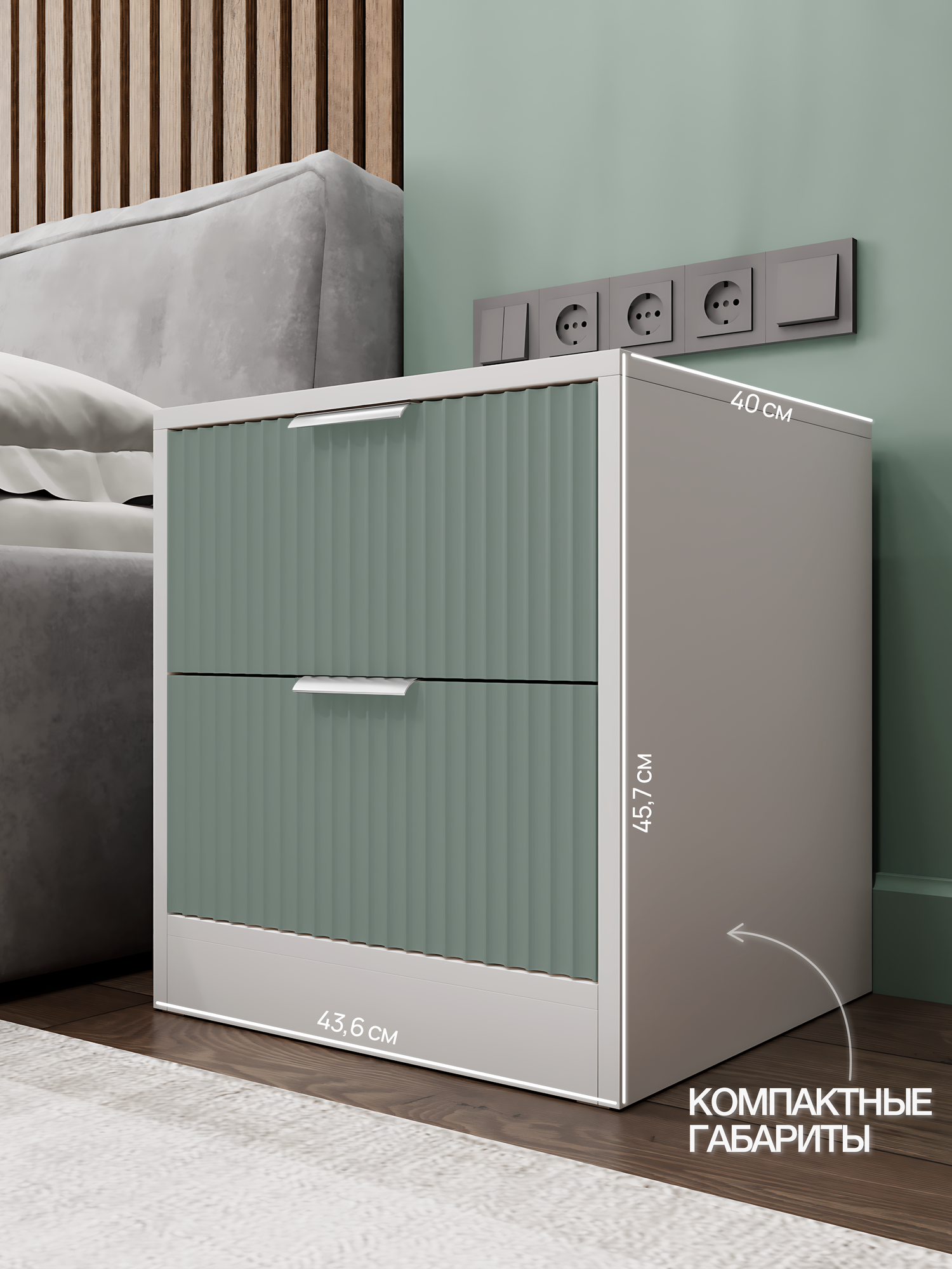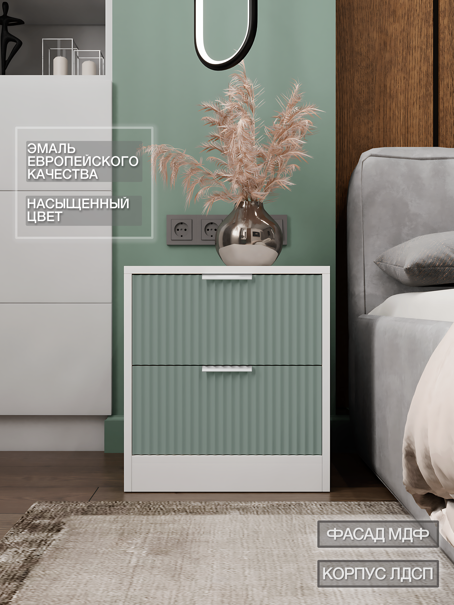 Прикроватная тумба KOMODO ВОЛНА-2, белая , зеленая 43.6х40х45.7