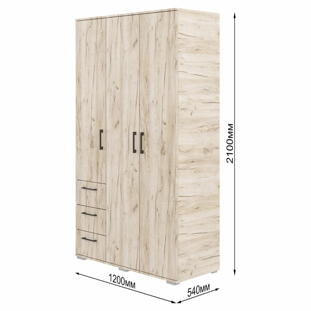 Шкаф МК "Пирамида" Шон-19 распашной, трехдверный, с 3-мя ящиками , цвет крафт серый, 210х120х52 см