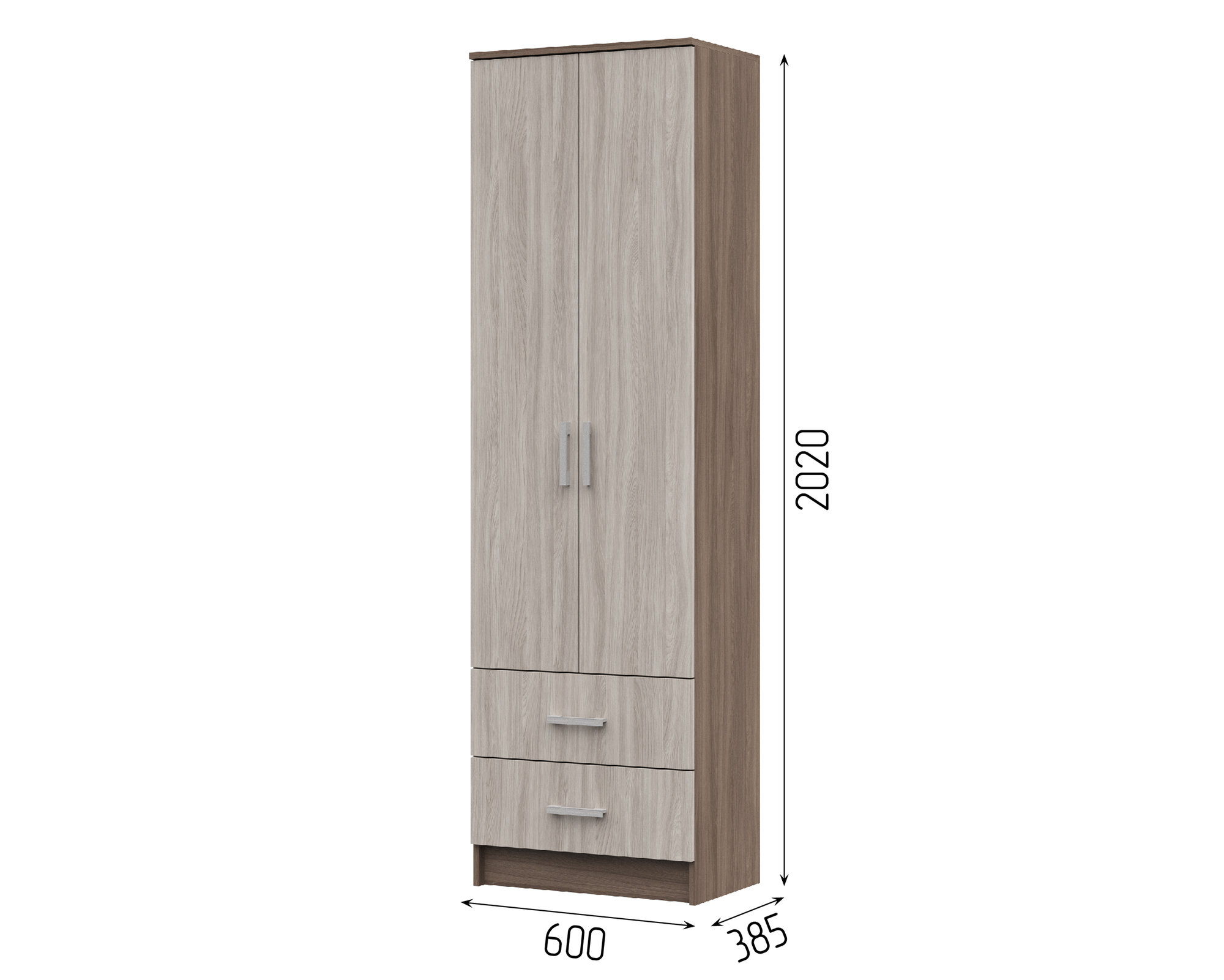 СохранитьШкаф двухстворчатый ШК-201 Машенька с выдвижными ящиками ЛДСП (600*2020*380), цвет Ясень-шимо темный/светлый Стендмебель интересное: