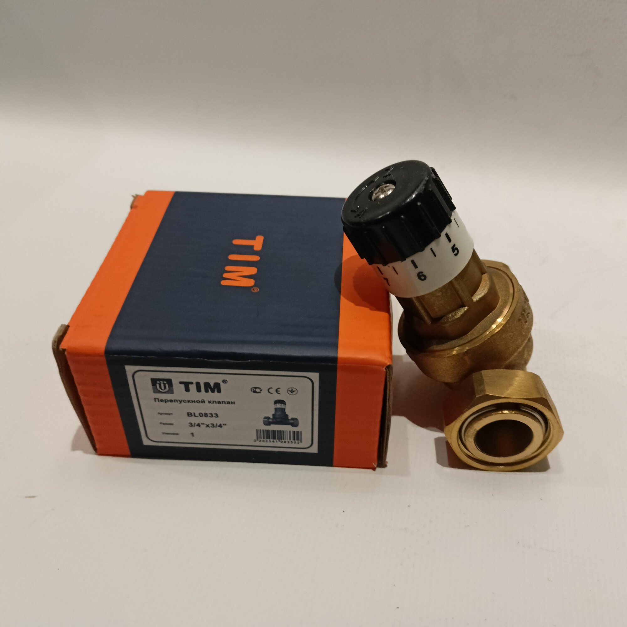 Перепускной клапан прямой с накидными гайками, 3/4" TIM арт. BL0833