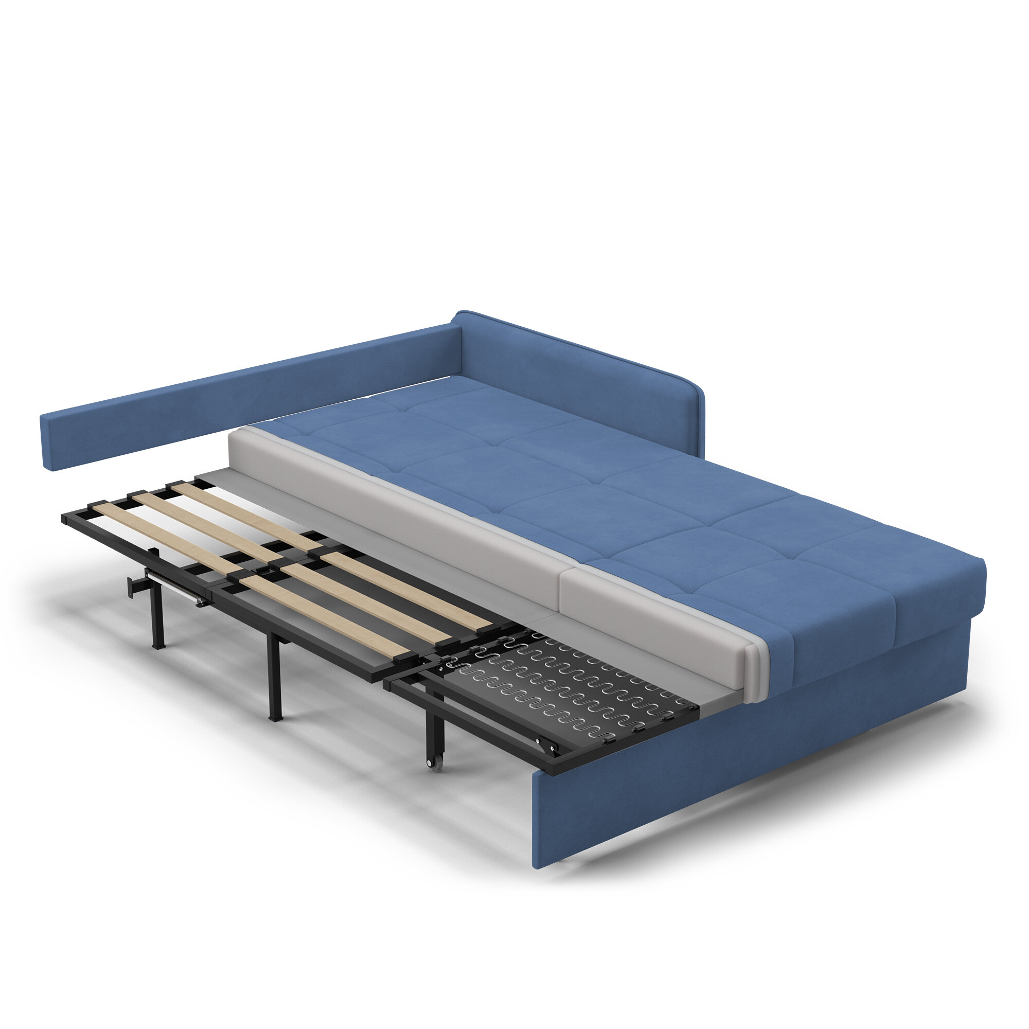 Диван-кровать раскладной прямой на металлокаркасе, аккордеон, ортопедический, 160х200 Хилтон NEW, велюр синий