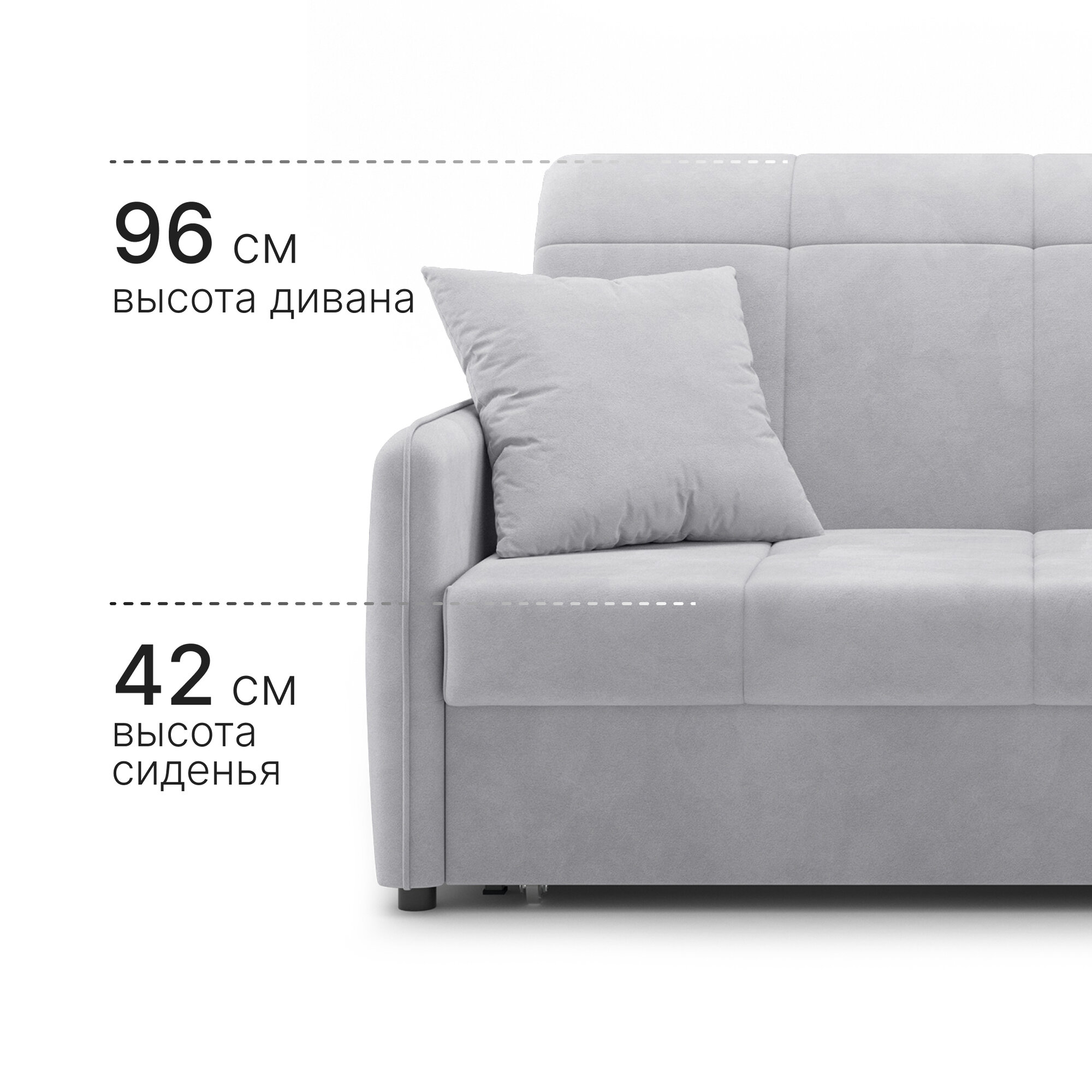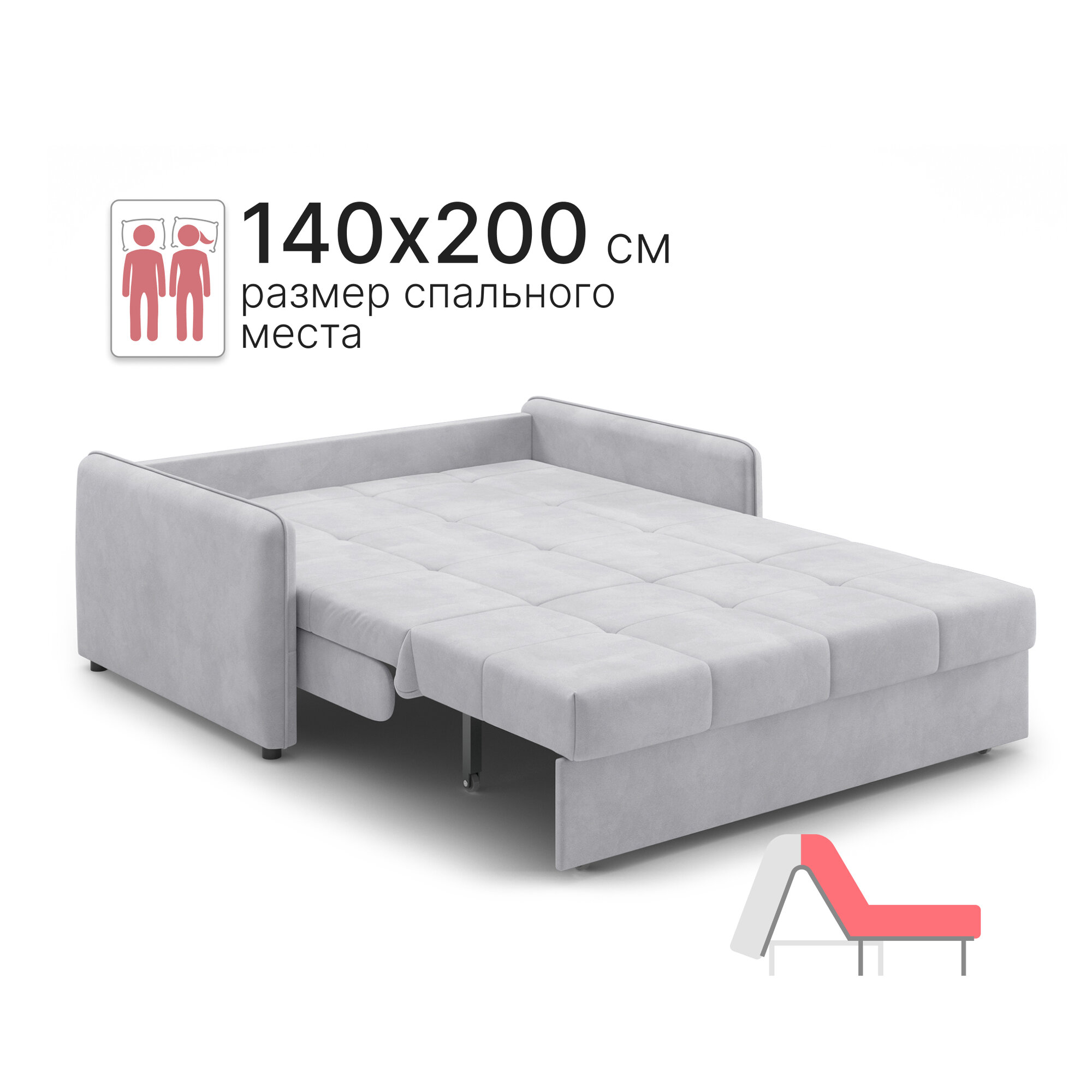 Купить Диван-кровать раскладной прямой на металлокаркасе, аккордеон, ортопедический, 140х200, велюр светло-серый