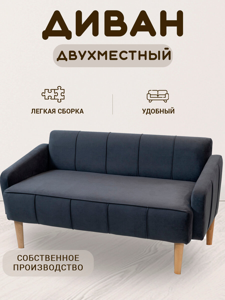Диван "Афина", прямой, с подлокотниками, синий, велюр, 120х65х68 см