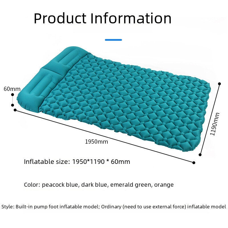Кемпинг на открытом воздухе, встроенный насос, надувной коврик, утолщенный, изумрудно-зелёный, 195см