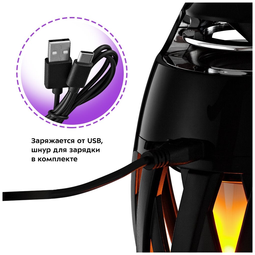 Ночник-светильник светодиодный камин декоративный с эффектом пламени, черный