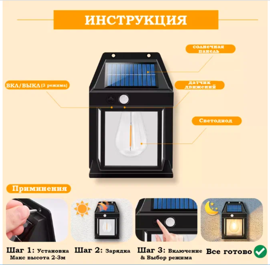 | Особенности | крепление в комплекте / на солнечной батарее / прозрачный плафон / смена цвета свечения |