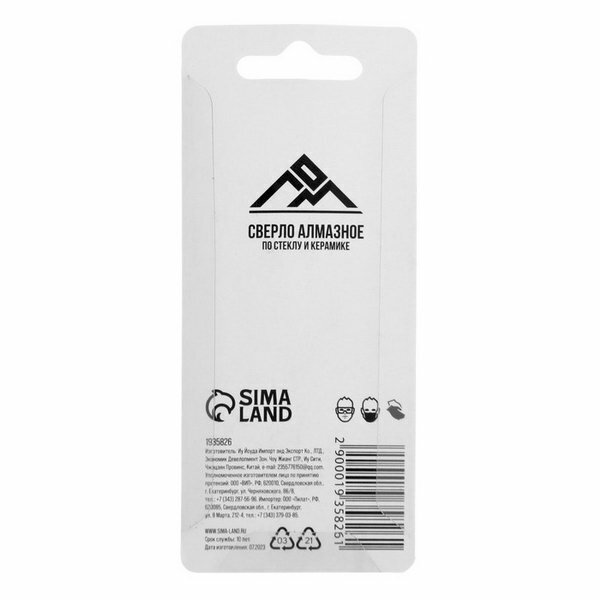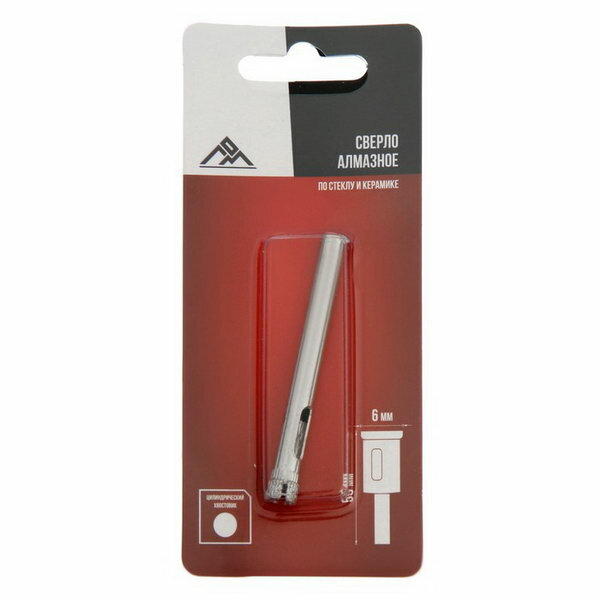 Сверло алмазное по стеклу и керамике ЛОМ, цилиндрический хвостовик, 6 х 55 мм