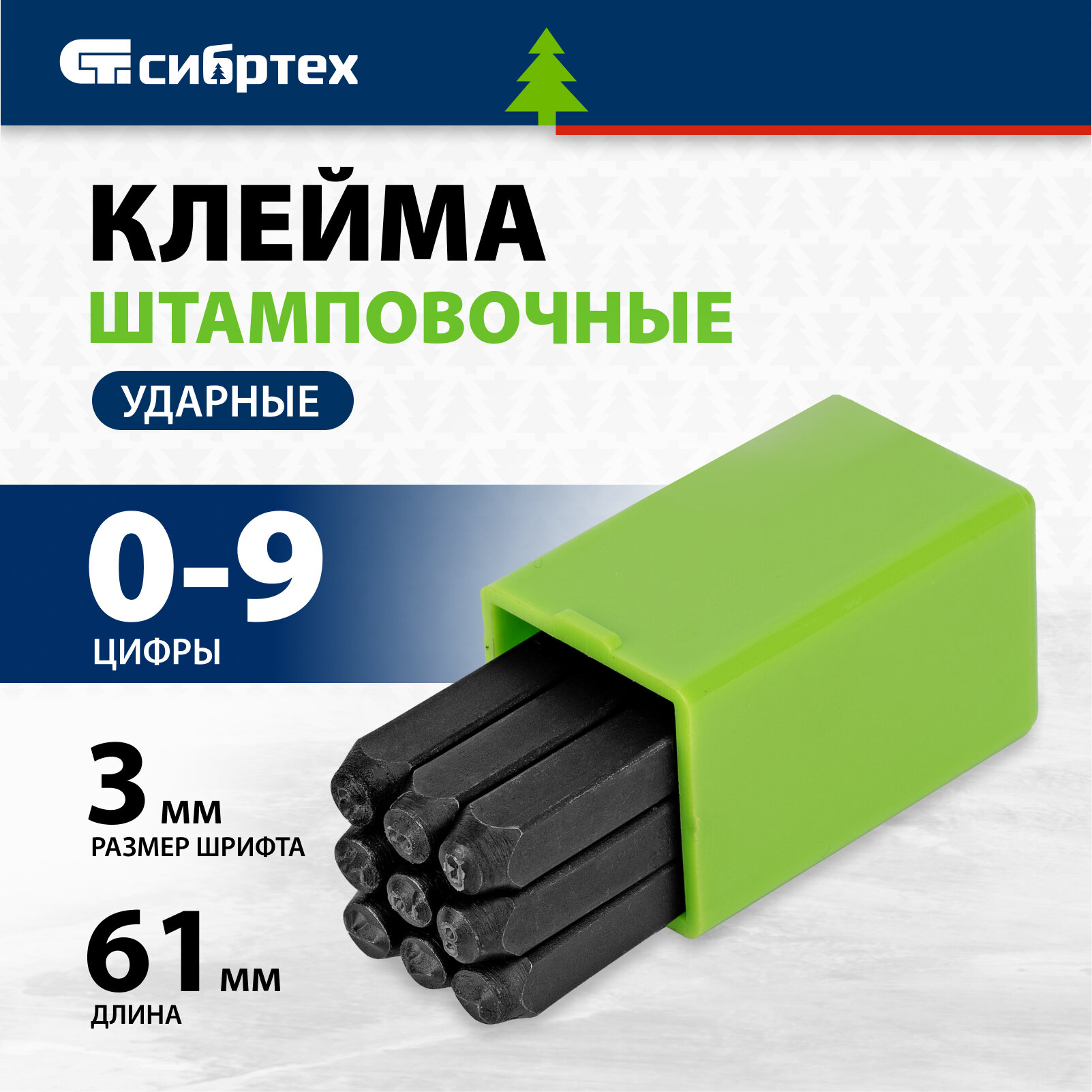 Купить Клейма штамповочные Сибртех ударные, цифровые, 3 мм, из инструментальной среднеуглеродистой стали, 18840