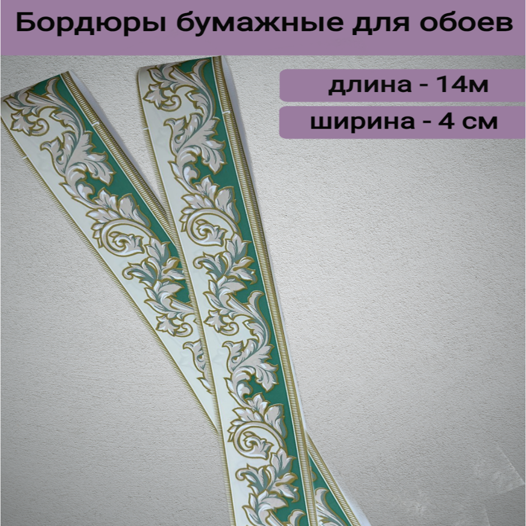 Бумажный бордюр, зеленый, для обоев, вензельный узор, 4см х 14м интересное: