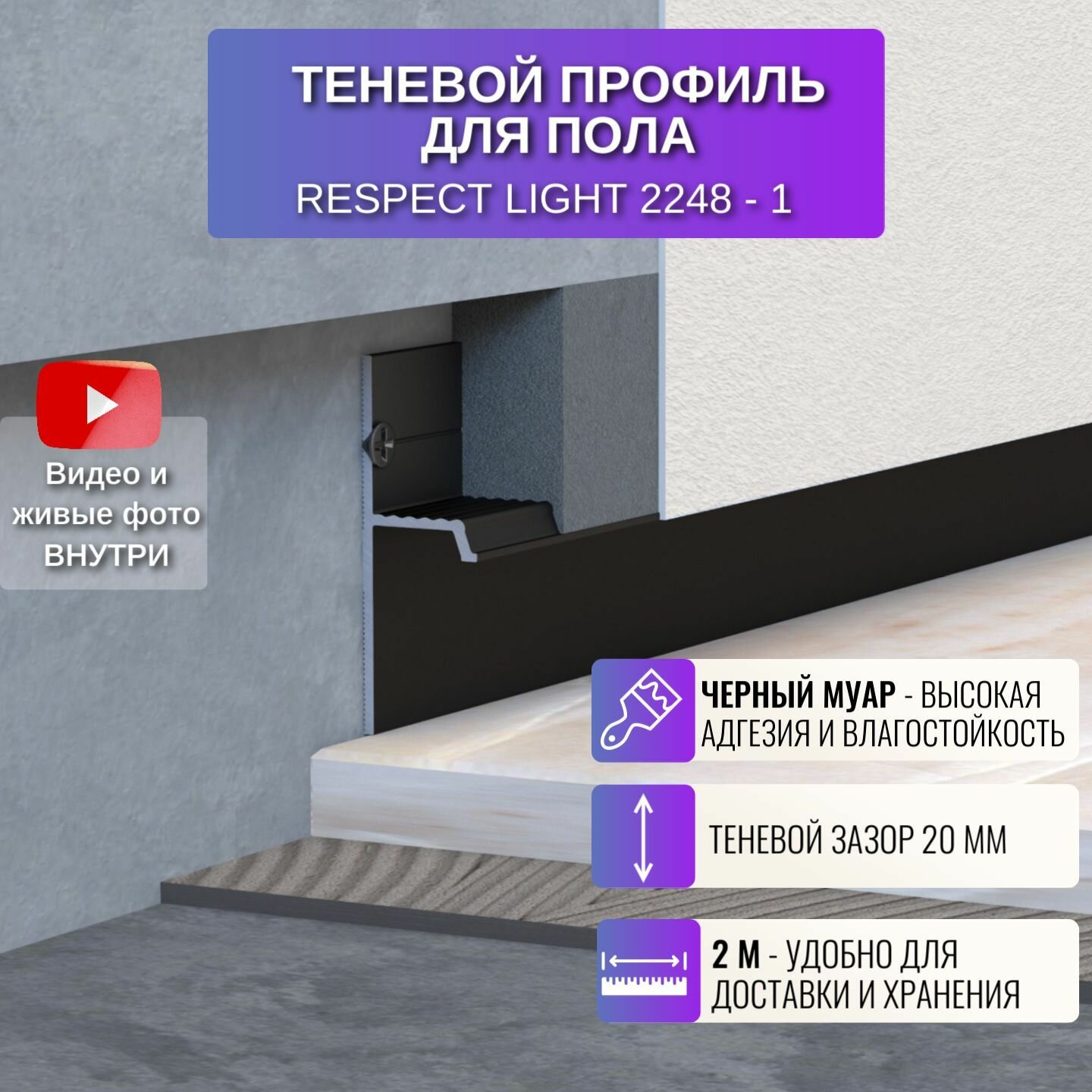 Ниже Вы можете прочитать отзывы на Плинтус напольный скрытый теневой профиль для пола Light 2 метра, 1 шт, цвет черный муар, ознакомится с подробными характеристиками, посмотреть интересные обзоры и фотографии на Плинтус напольный скрытый теневой профиль для пола Light 2 метра, 1 шт, цвет черный муар.
