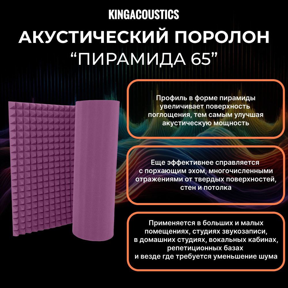 Купить Акустический поролон Пирамида 65 / 6 листов 1950х950х65мм фиолетовый цвета