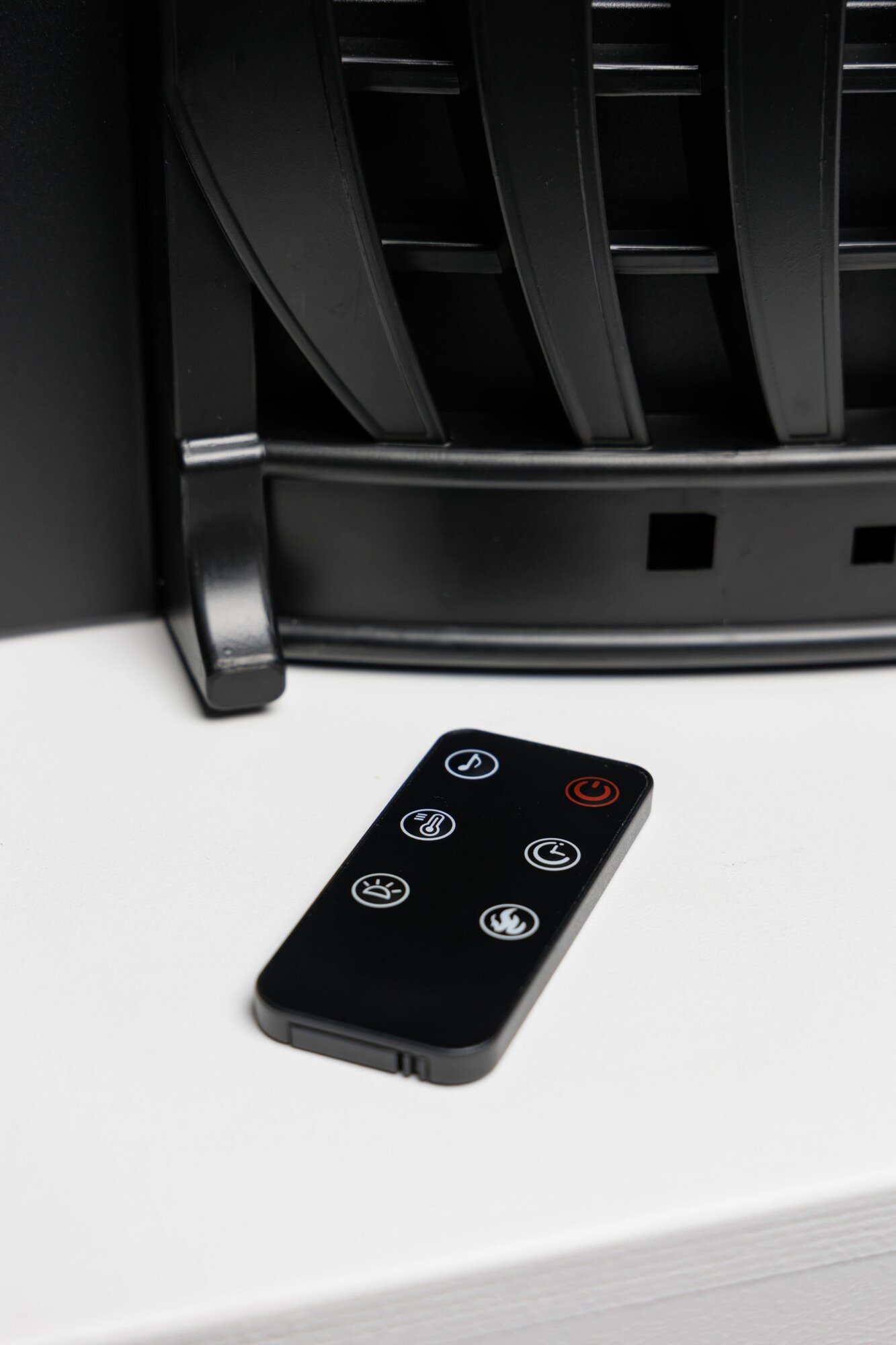 Камин электрический ELEKAM NEO белый+чёрный с очагом с пультом, обогревом и звуком потрескивания дров (Электрокамин)