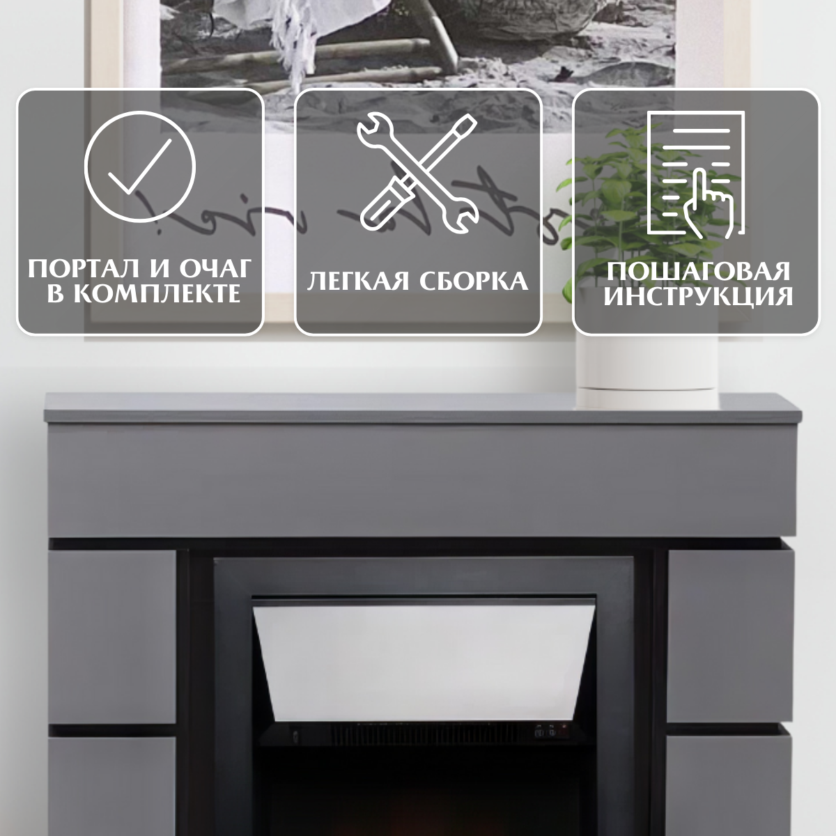 | Комплектация | Портал для камина ELEKAM Silver цвет черный, Электроочаг Velar |