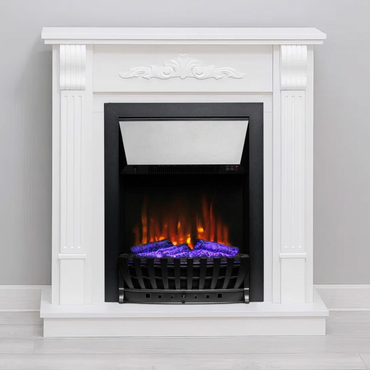 Камин электрический ELEKAM NEO белый с очагом Pulsar 38 с дровами с обогревом и звуком потрескивания дров (Электрокамин)