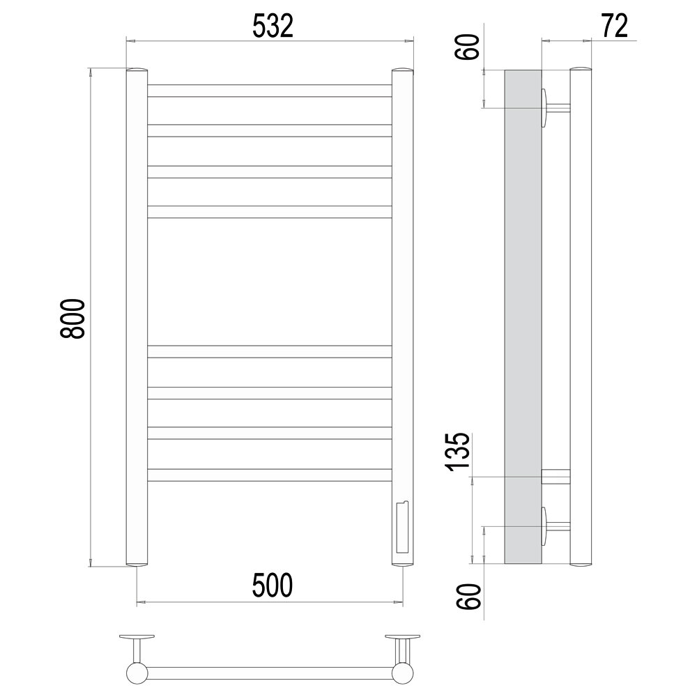 Полотенцесушитель электрический Terminus КС Аврора П8 500х800 черный, 4670078527493