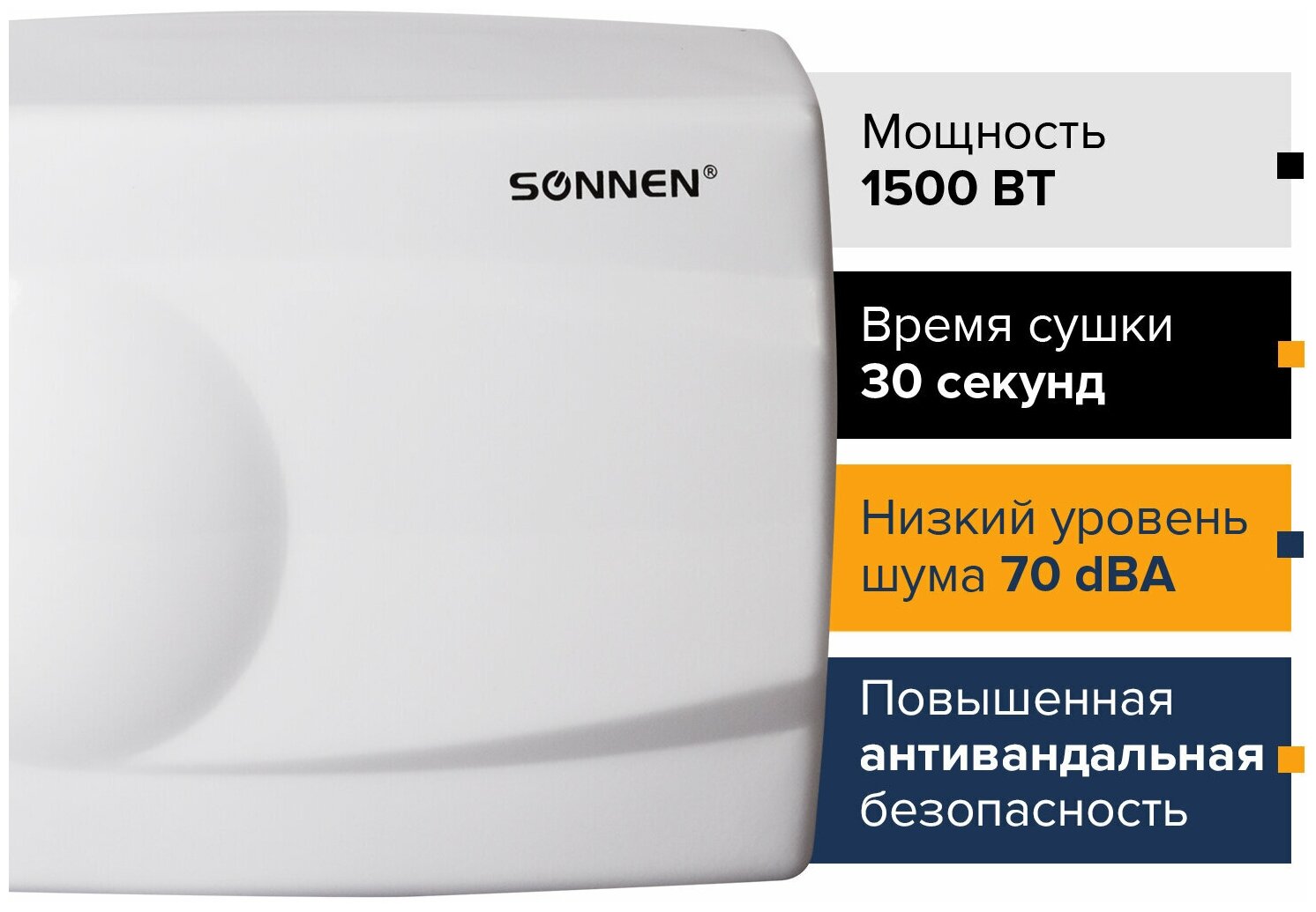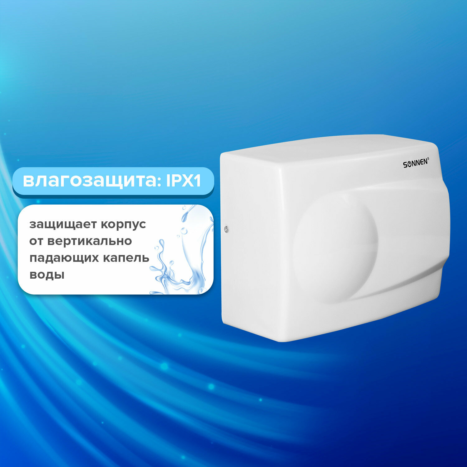 Сушилка для рук электрическая Sonnen HD-298, 1500Вт, металл, белый (604193) интересное: