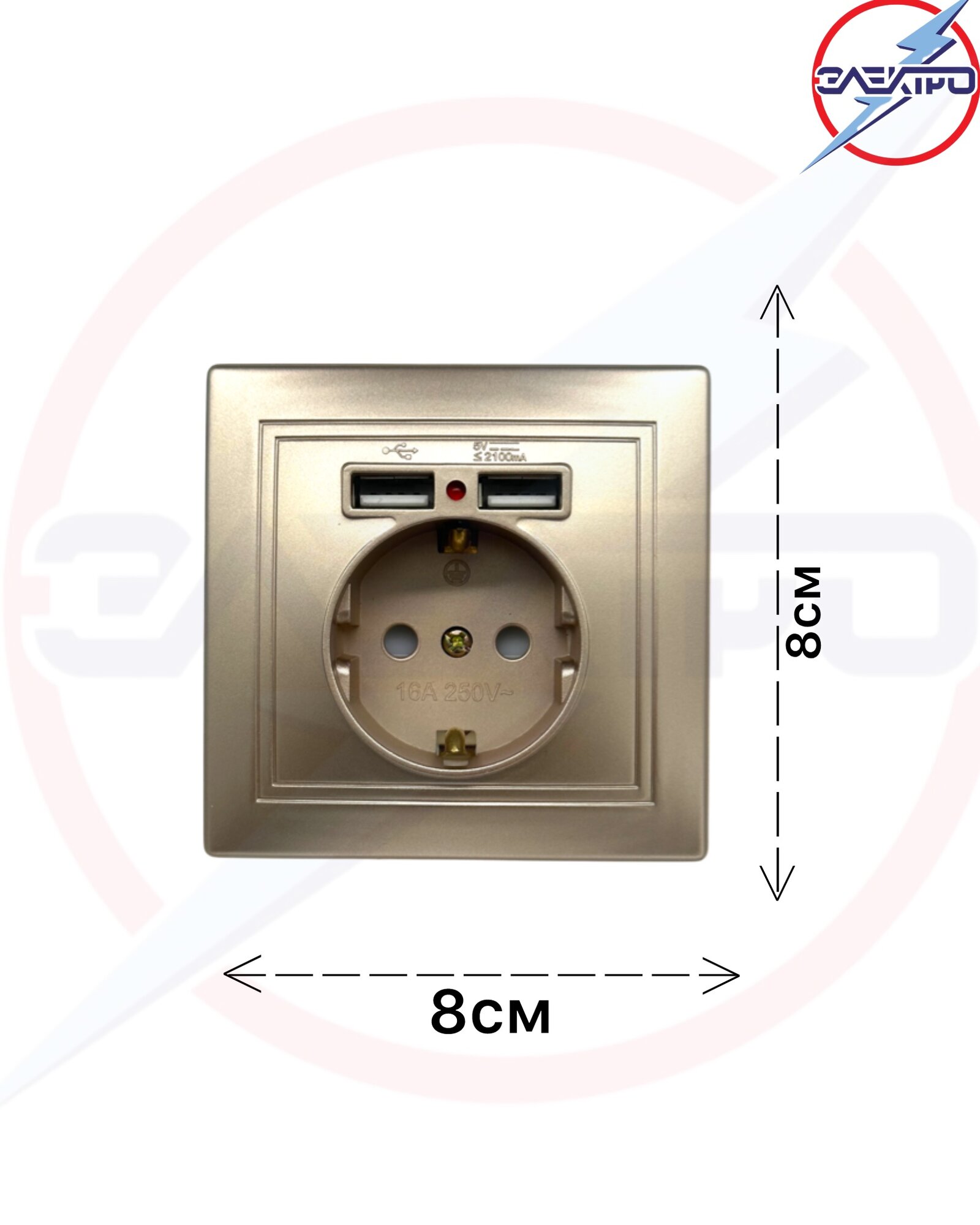 Розетка с заземлением Мира +2 USB жемчужное золото интересное: