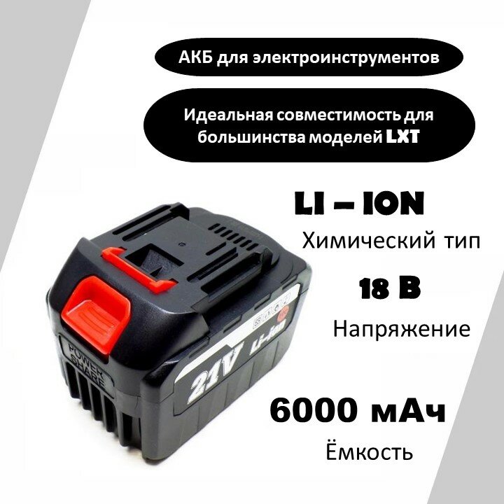 Купить Аккумулятор INGF 18 V, Li-Ion, 6 Ач, для электроинструмента, чёрный