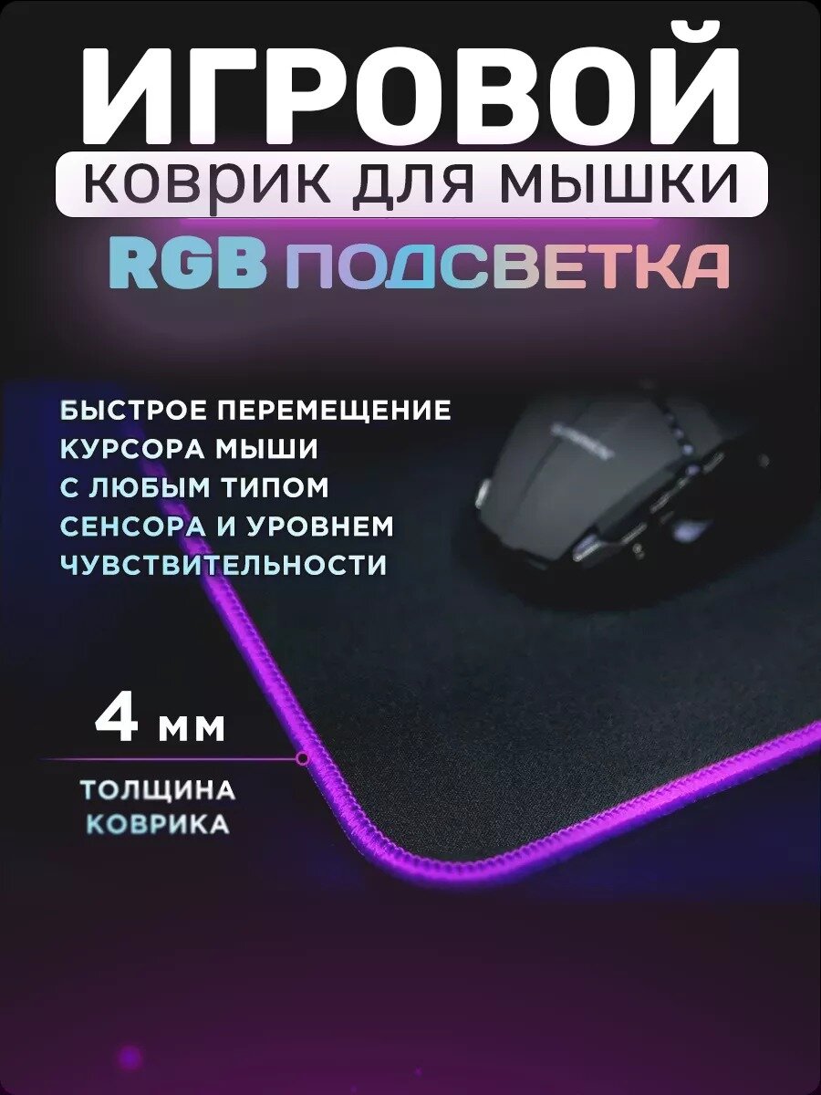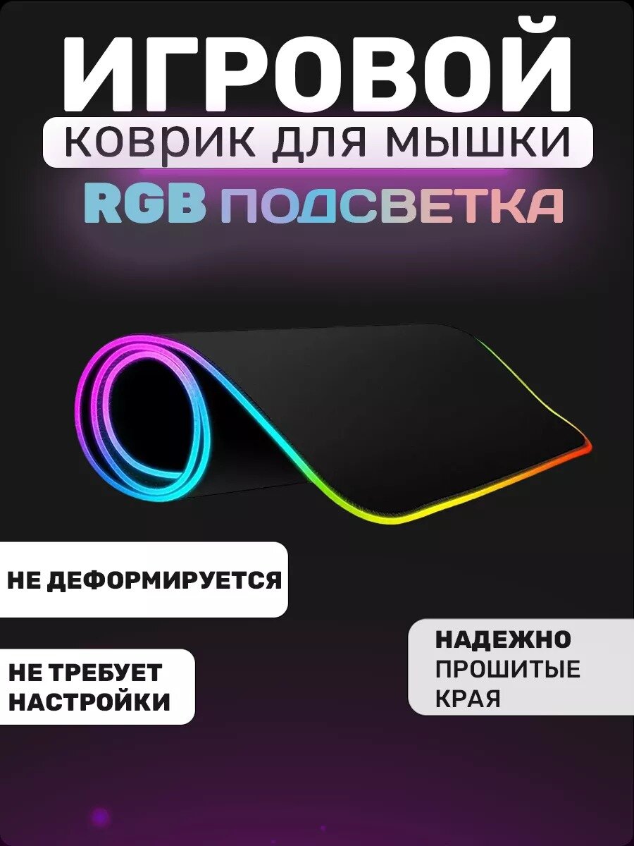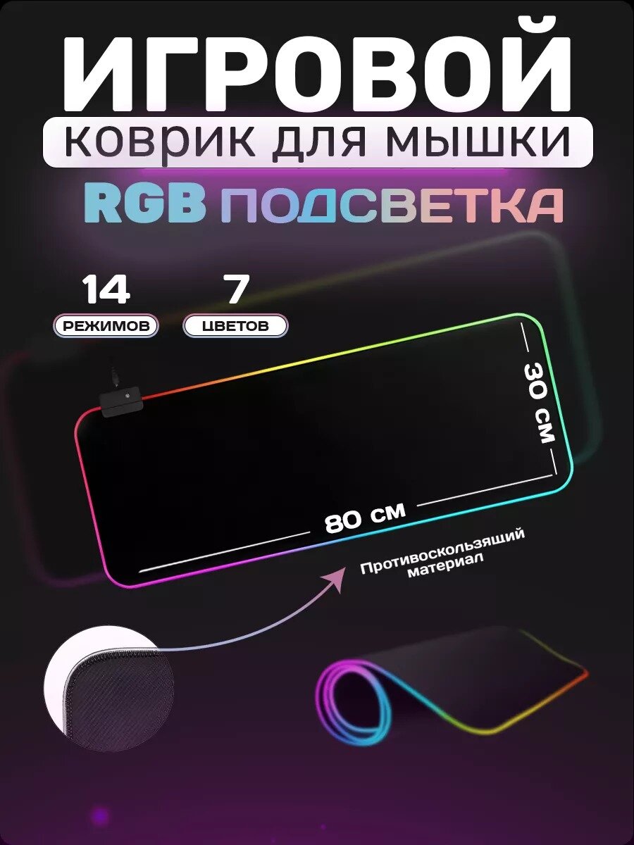 Игровой коврик для мышки с подсветкой, большой на стол 80х30, с RGB подсветкой, резиновое основание, черный интересное: