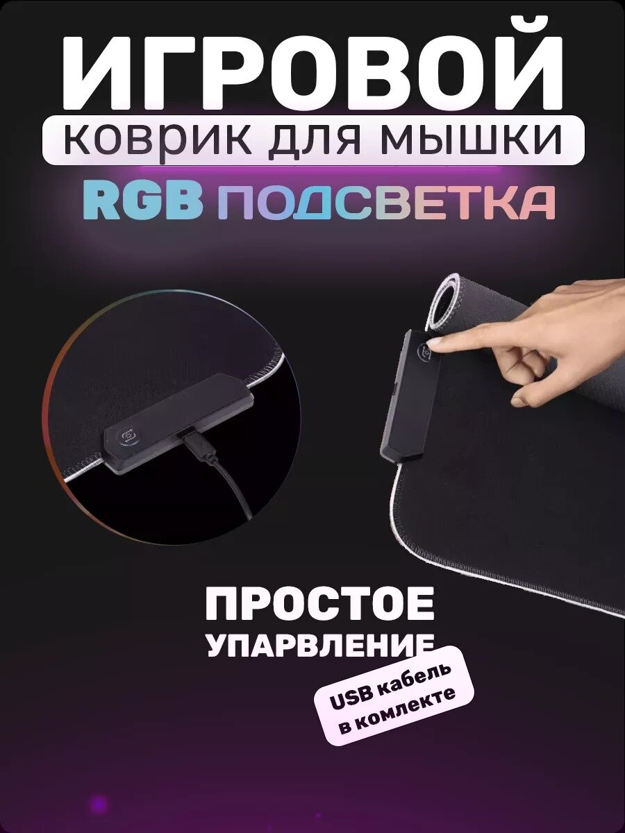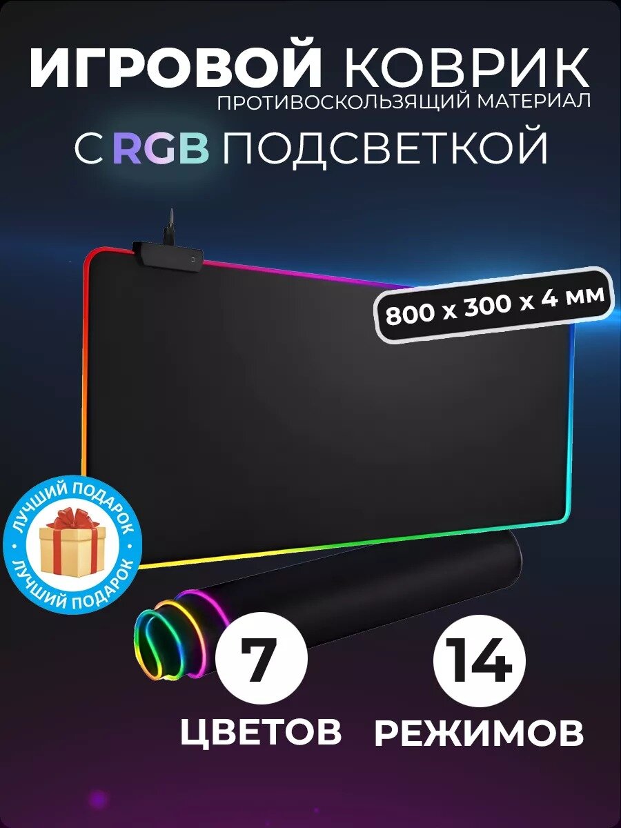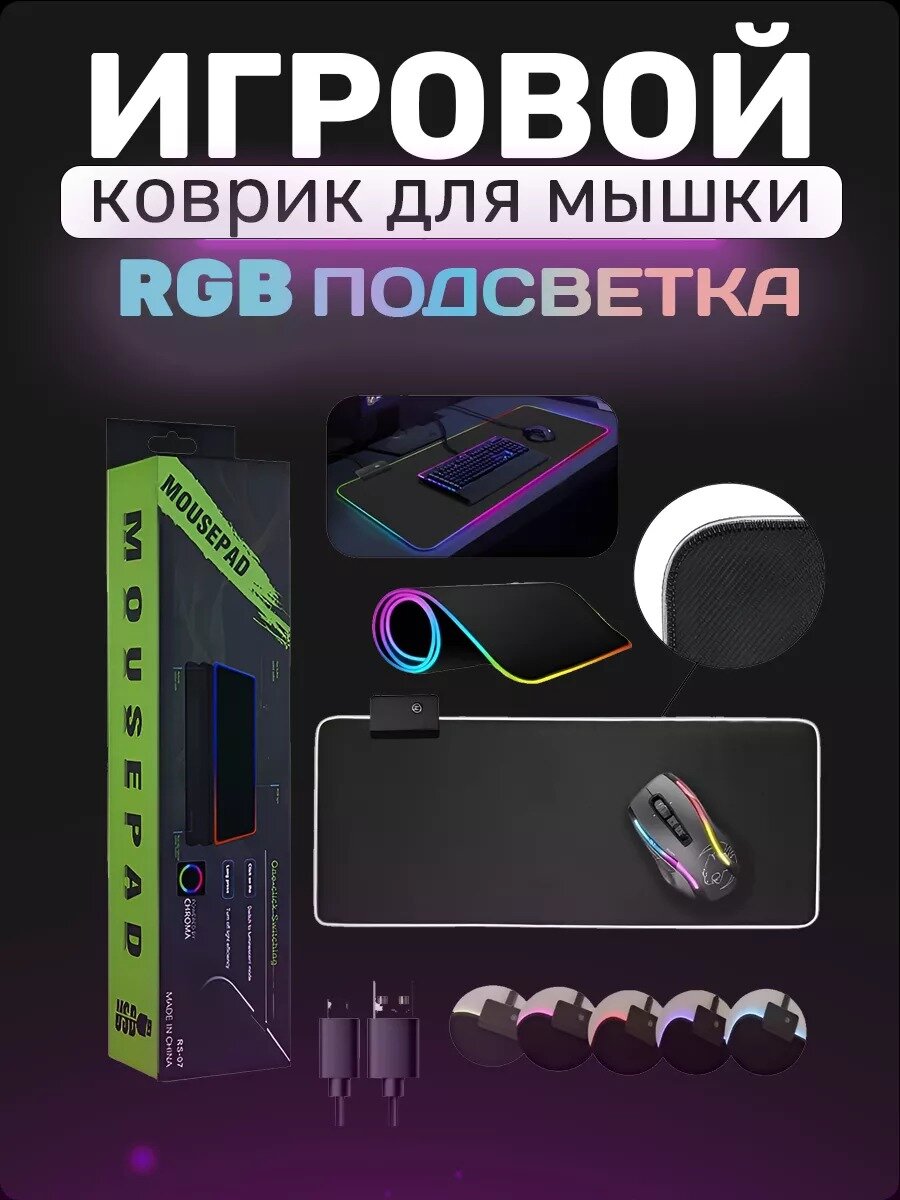 Игровой коврик для мышки с подсветкой, большой на стол 80х30, с RGB подсветкой, резиновое основание, черный интересное: