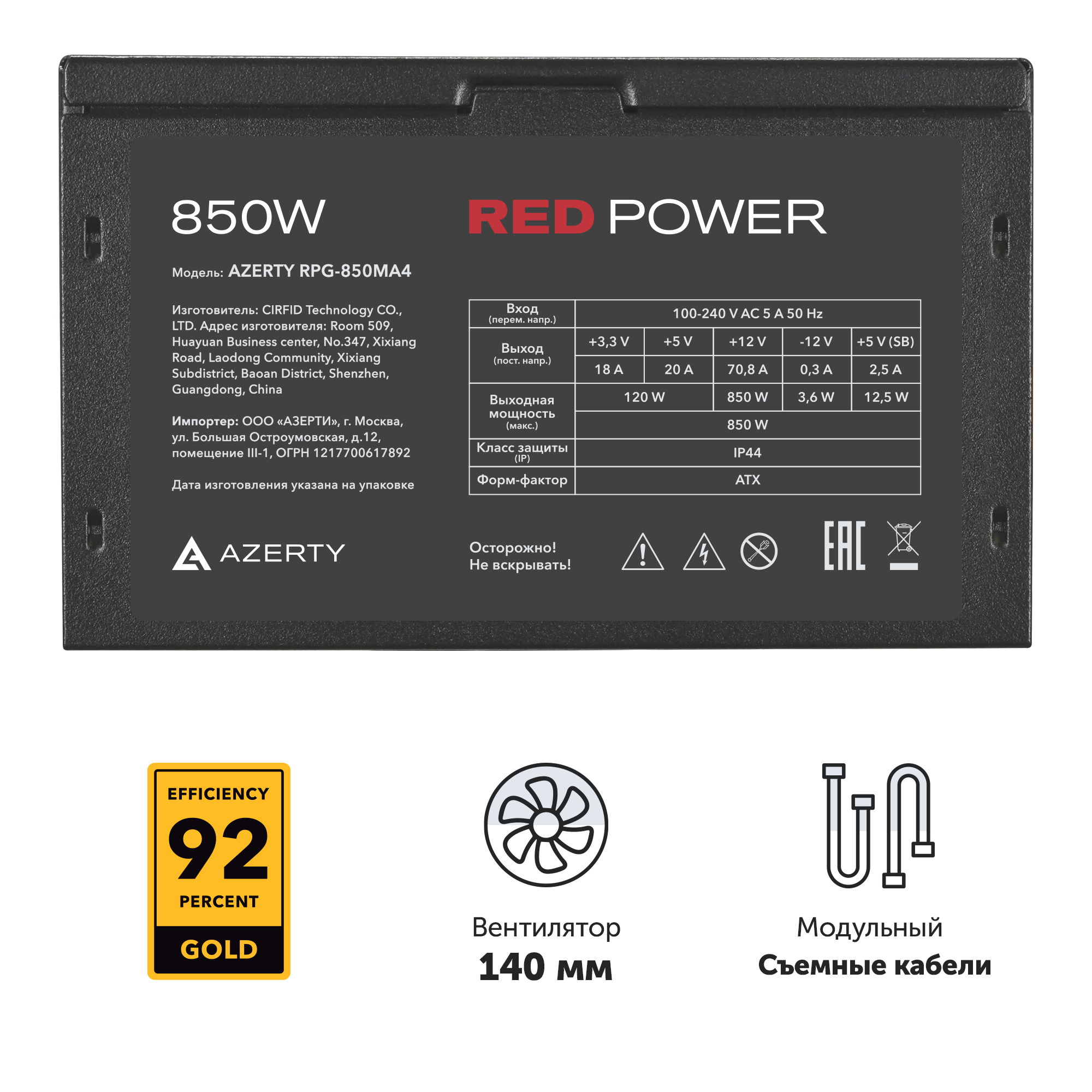 Купить Блок питания компьютера Azerty RPG-850MA4 (850 W) Gold