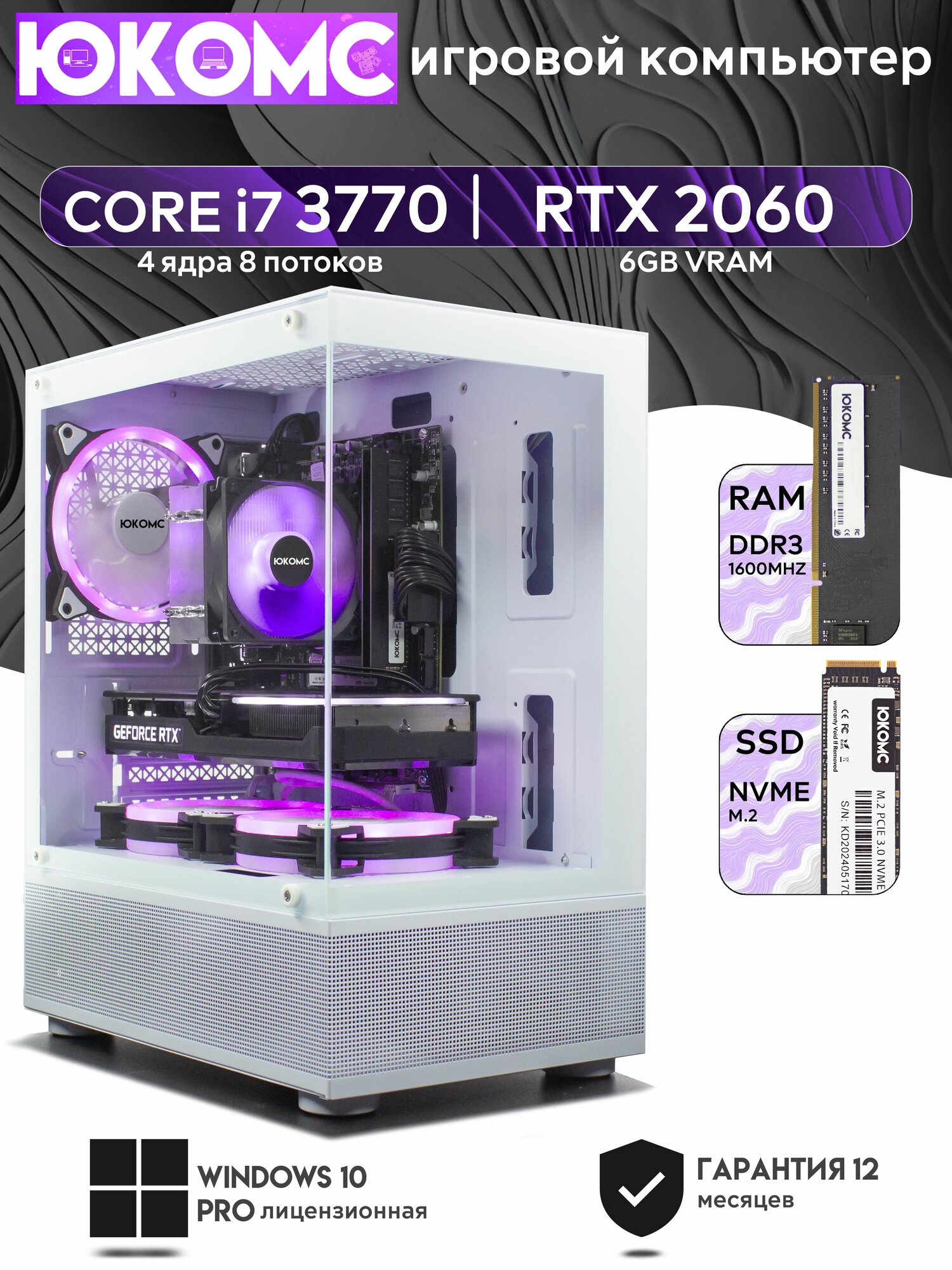 Игровой PC юкомс i7 3770, RTX 3070 8GB, SSD 128GB, 16GB DDR3, БП 600W, win 10 pro, White Cube case