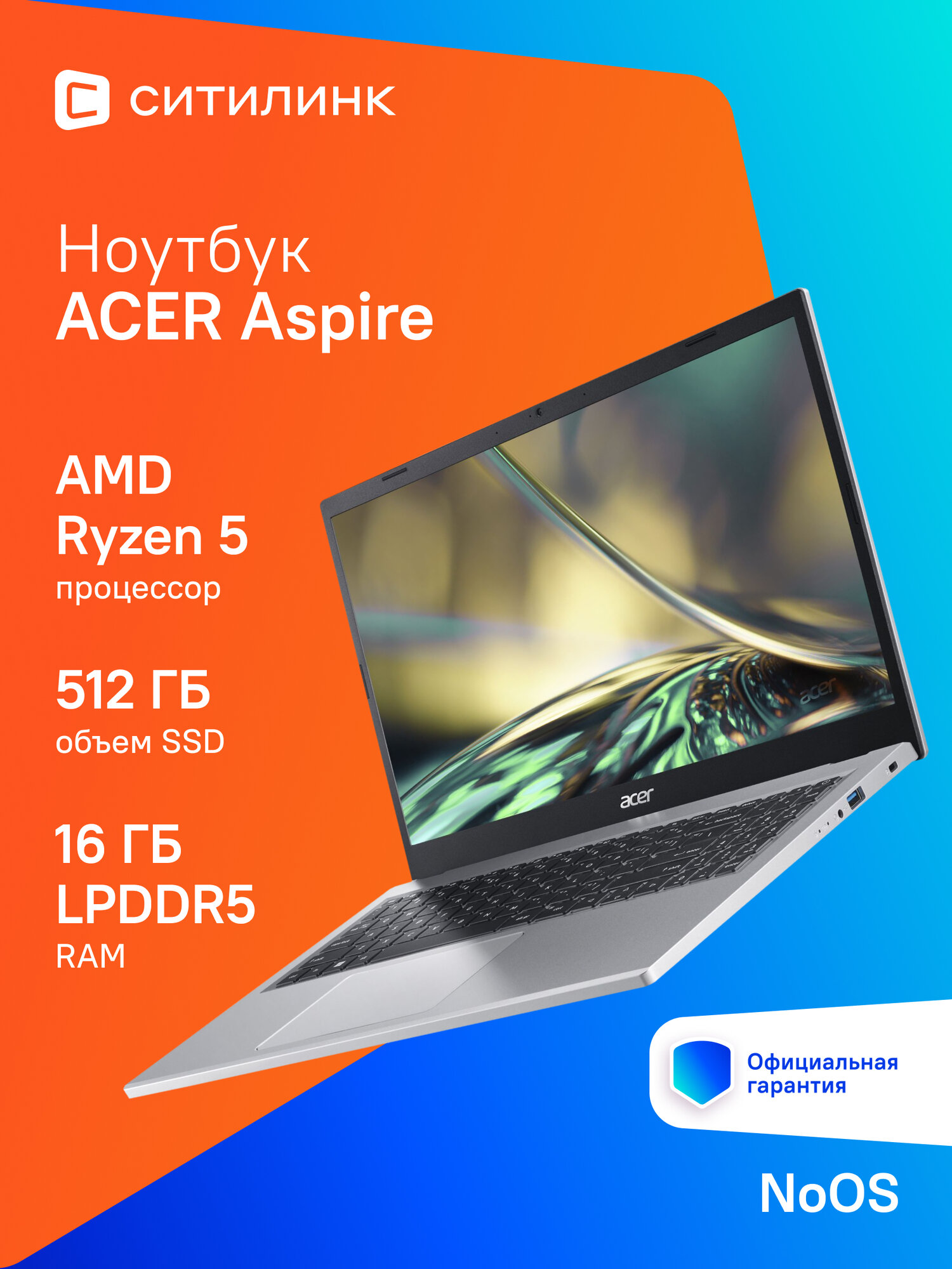 Купить Ноутбук Acer Aspire 3 A315-24P-R80J 15.6", IPS, AMD Ryzen 5 7520U 2.8ГГц, 4-ядерный, 16ГБ LPDDR5, 512ГБ SSD, AMD Radeon 610M, без операционной системы, серебристый [nx. kdecd.009]