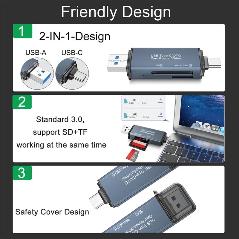 SKOWER Адаптер для карт памяти USB 3.0, USB 3.0 (SD TF)