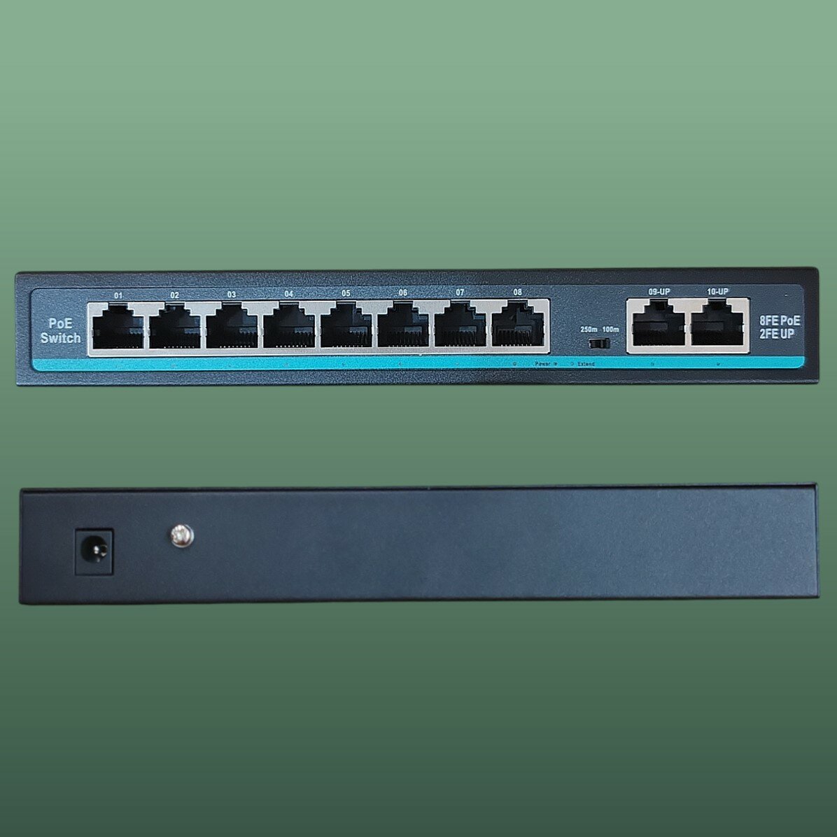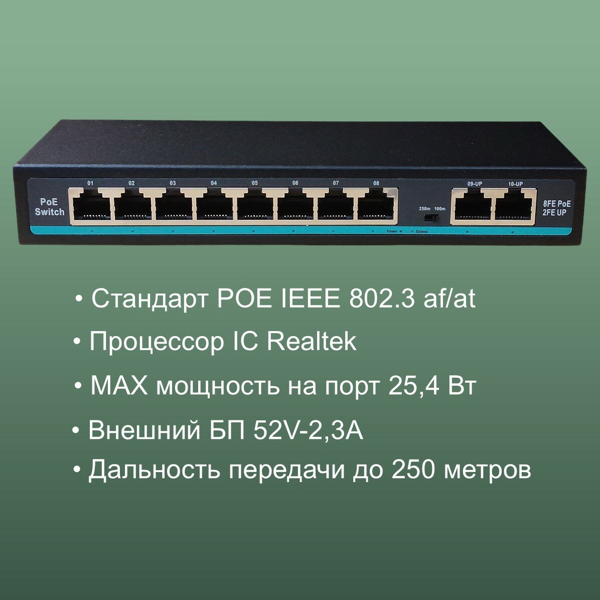 Коммутатор YDA POE(свитч) 8POE+2Uplink,100 Мбит/с, WatchDog+VLAN, Бюджет 120 Ватт,наружный БП, switch IC REALTEK