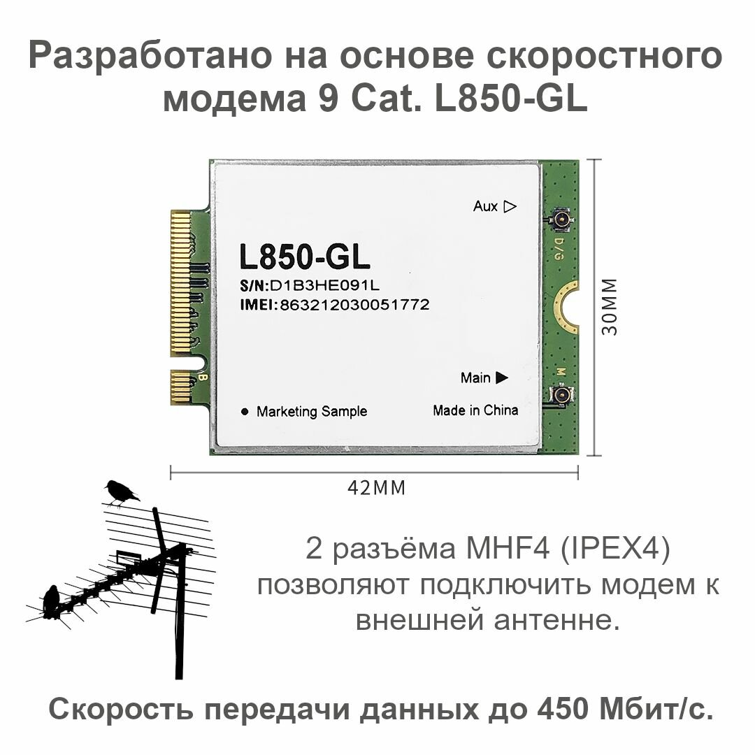 | Интерфейсы | MHF4, USB 3.0 |