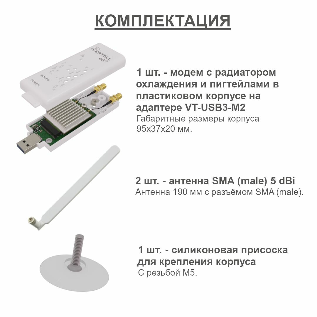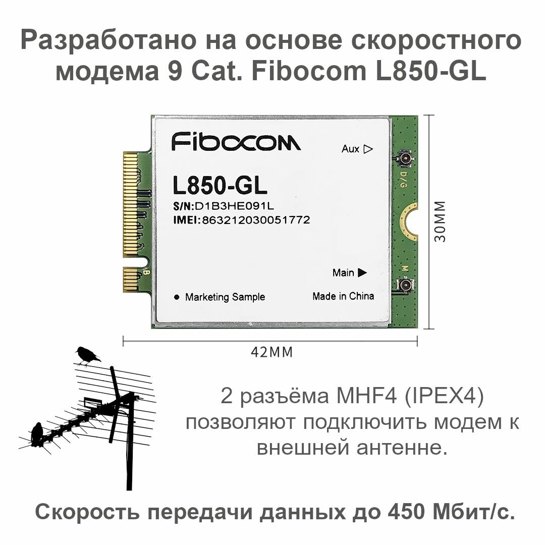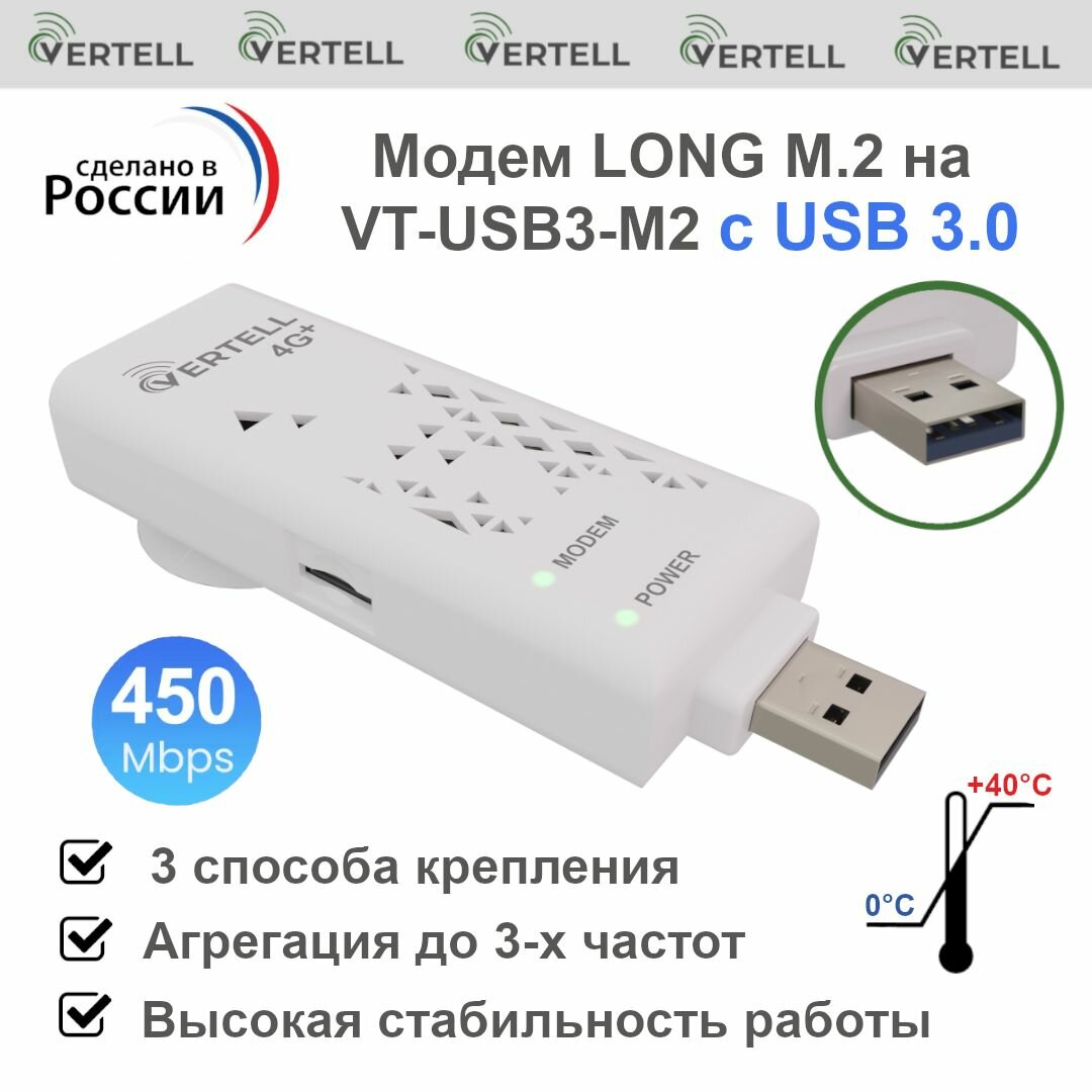 Купить USB модем Vertell LONG M.2 в корпусе с 3.0 на базе Fibocom L850-GL с агрегацией частот Cat 9 со скоростью до 450 Мбит/с
