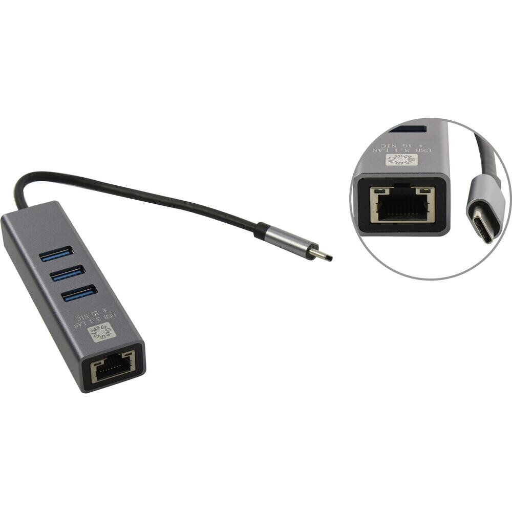 5bites Ua3c-45-12bk Кабель-адаптер USB3.1 / 3*USB3.0 / RJ45 1G / AL / Grey
