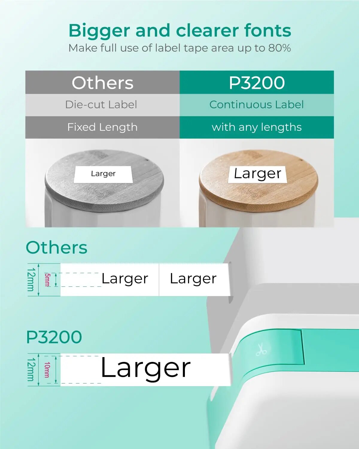 Купить Портативный принтер этикеток Vixic P3200 Bluetooth 6-12 мм, Only 3 white tape