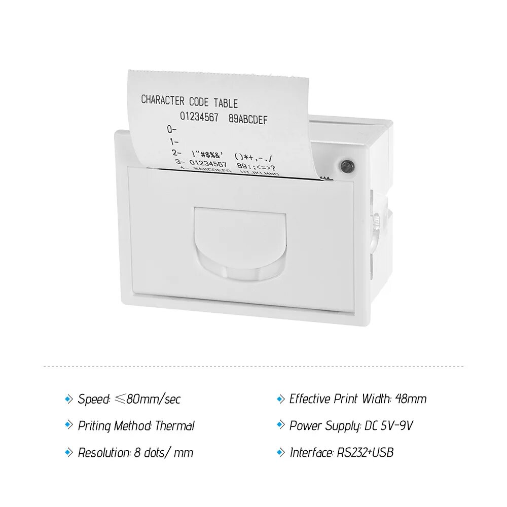 Мини встроенный термопринтер GOJPRT QR204 58 мм, White RS232 with USB