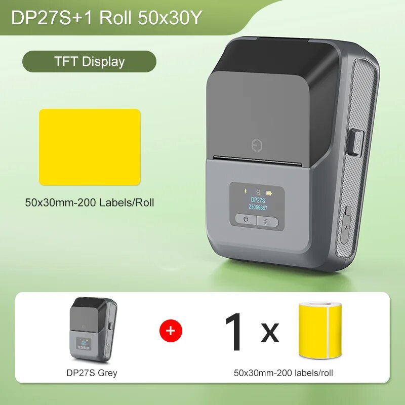 Мини-принтер detlonger с TFT-дисплеем, 27SGreen 1Roll 5030Y