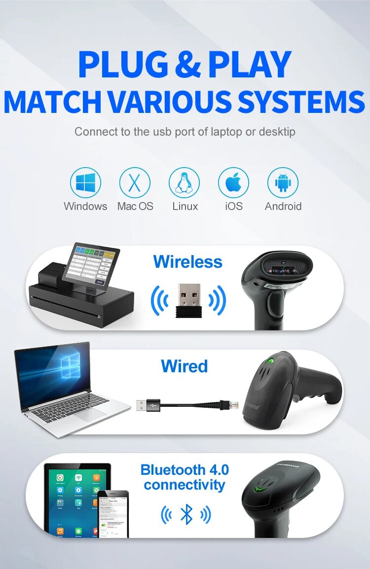 GTCODESTAR Беспроводной Bluetooth сканер штрих-кодов, GT-9701C 2D 2.4G интересное: