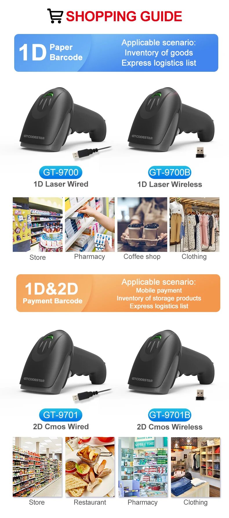 Портативный беспроводной Bluetooth 2D сканер штрих-кодов, GT-9701 2D Wired