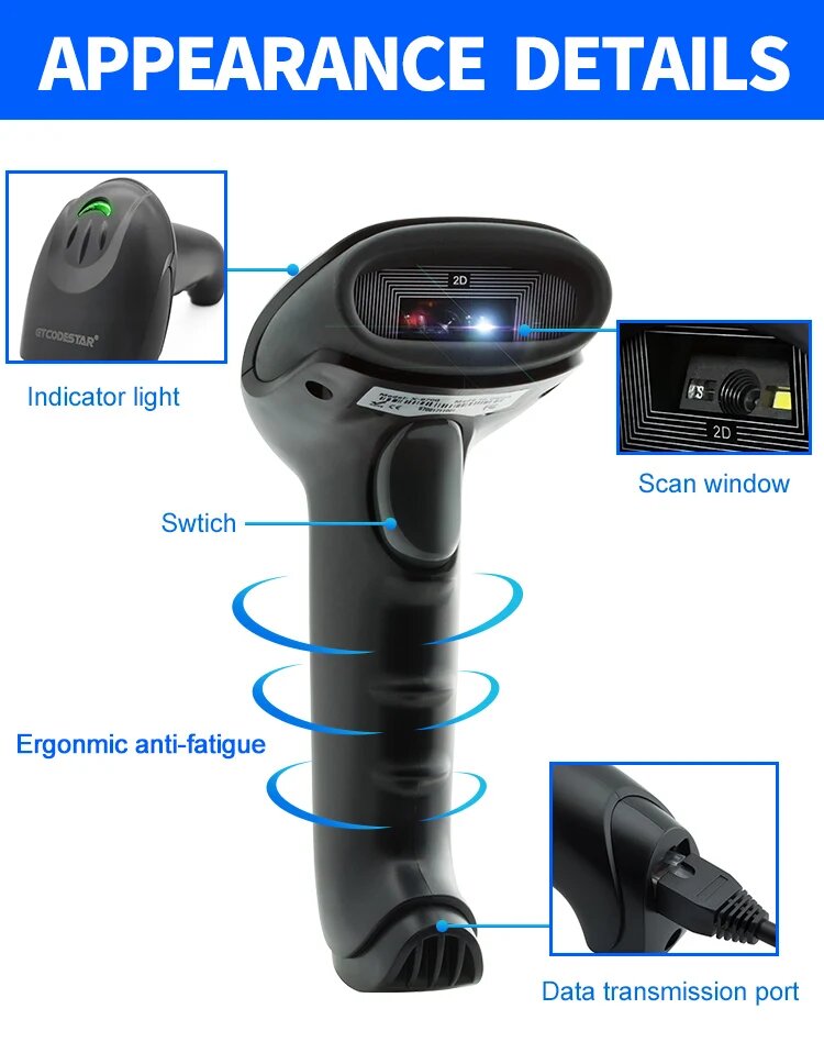 GTCODESTAR Беспроводной Bluetooth сканер штрих-кодов, GT-9701B 2D BT интересное: