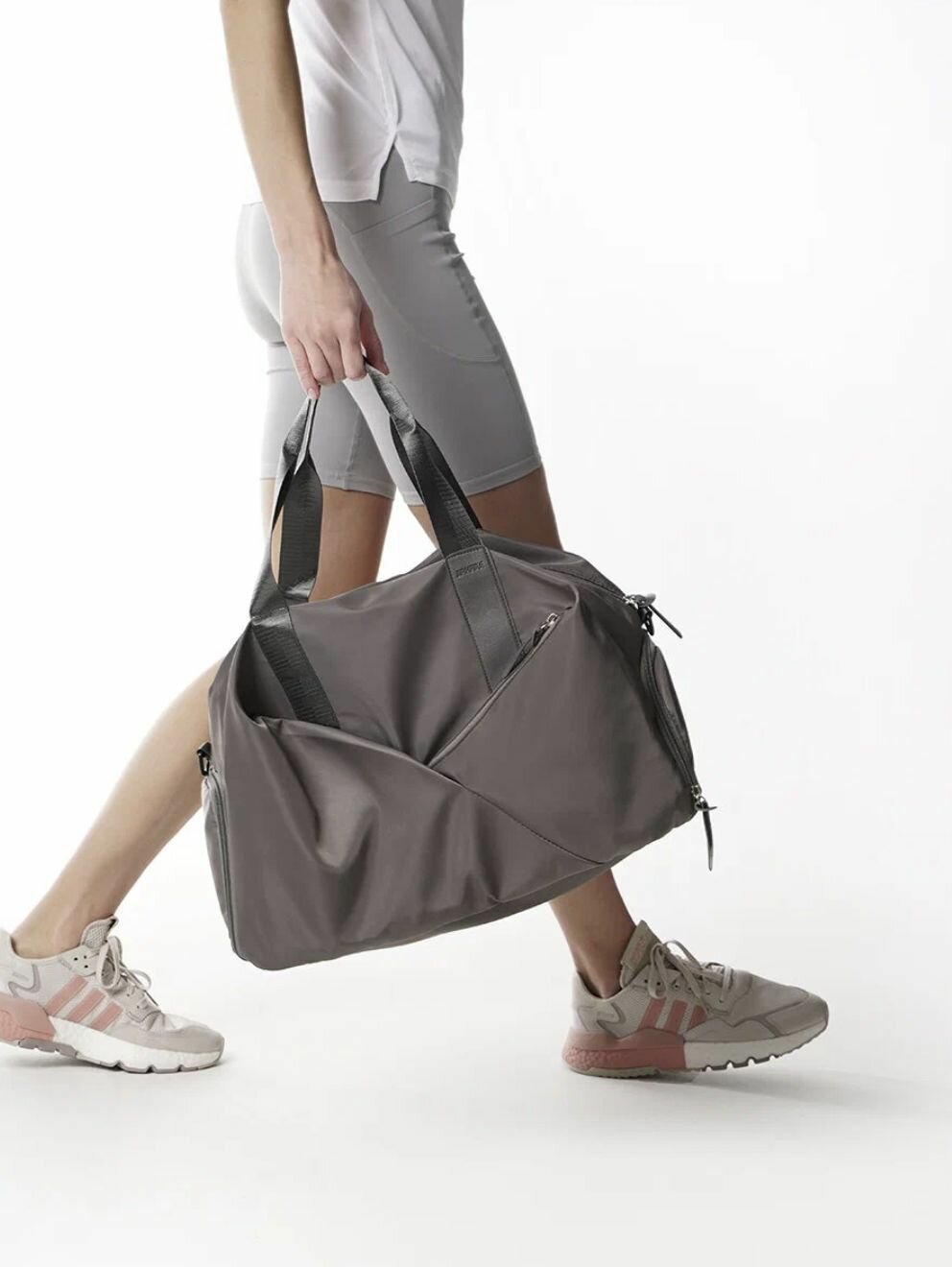 Сумка спортивная / Сумка дорожная для ручной клади / Сумка для бассейна с отделением для мокрых вещей, серый
