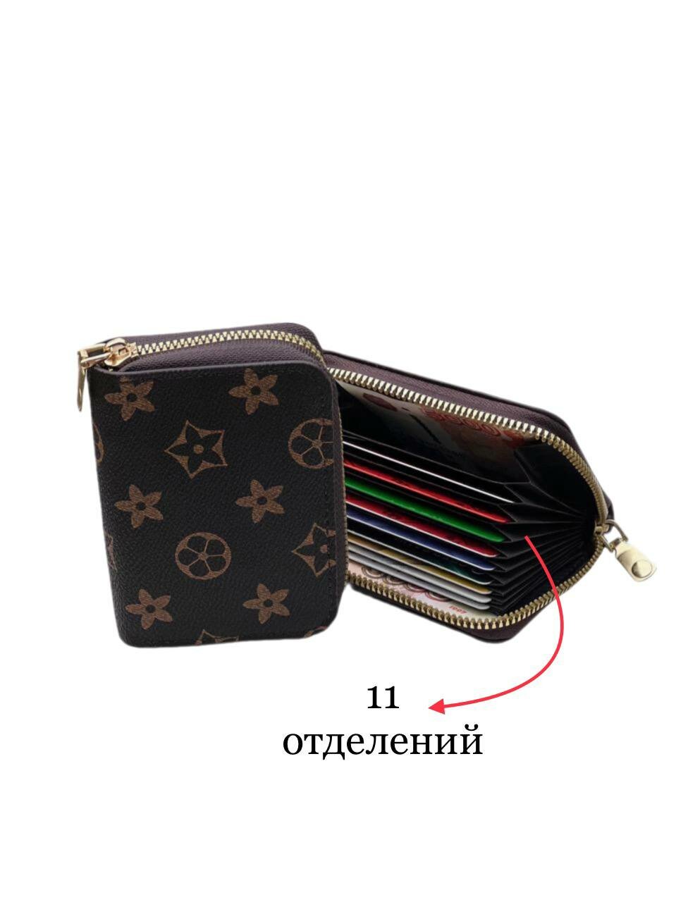 Визитница , фактура зернистая, коричневый с принтом интересное: