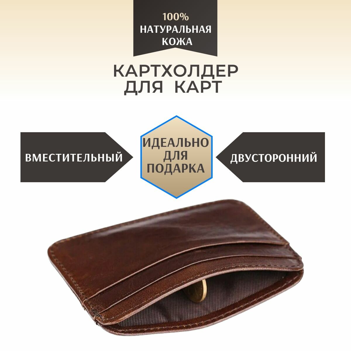 Картхолдер KESHBAG, фактура гладкая, баффало коричневый интересное: