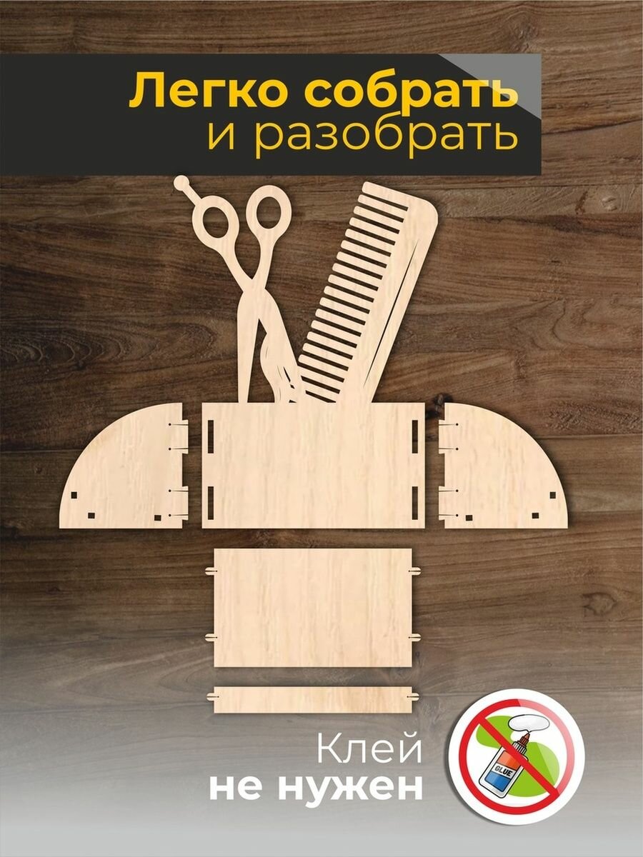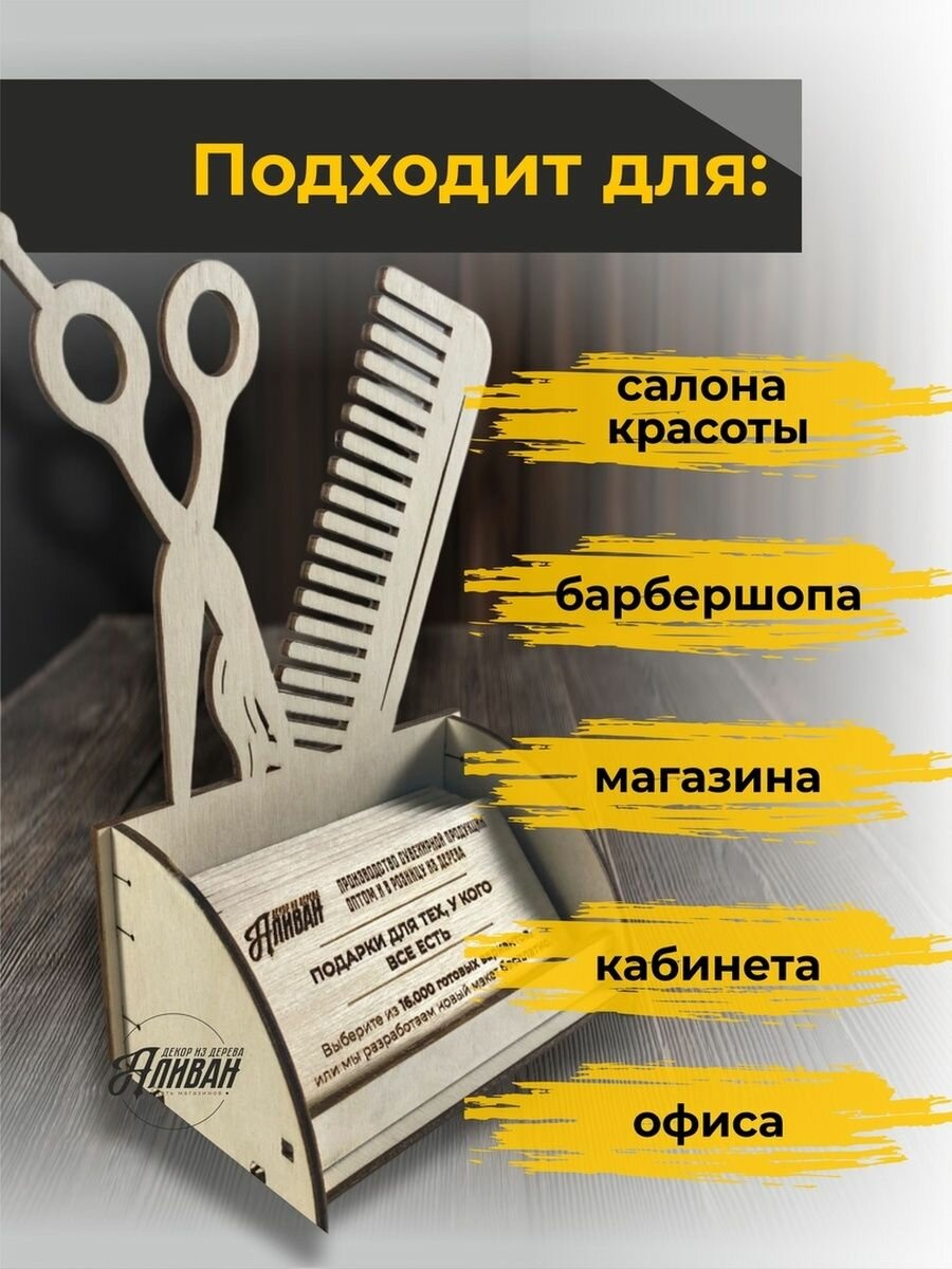 Подставка под визитки дерево парикмахер ножницы расчёска натуральный